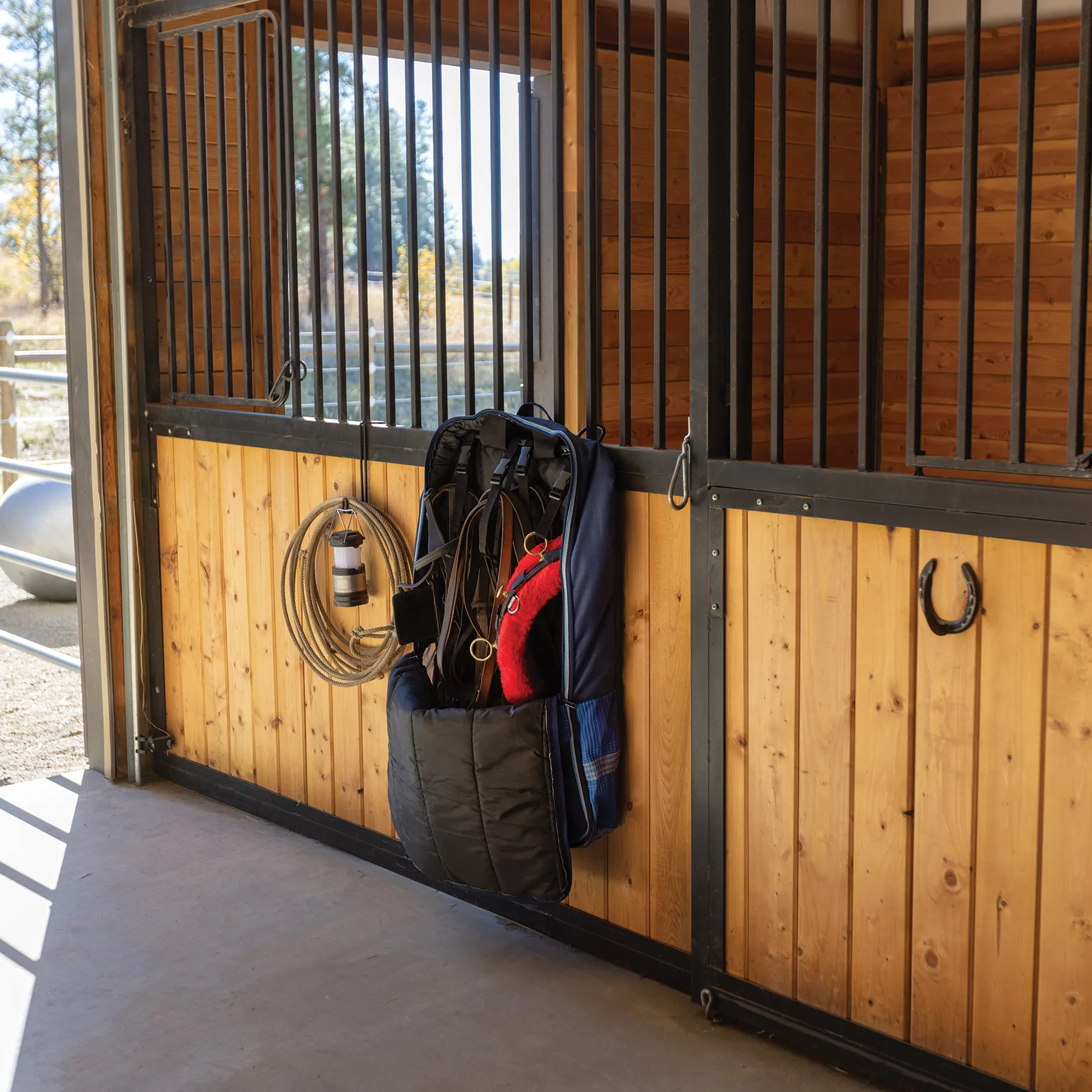 - Twin swivel hooks for hanging anywhere stalls, trailers, fences