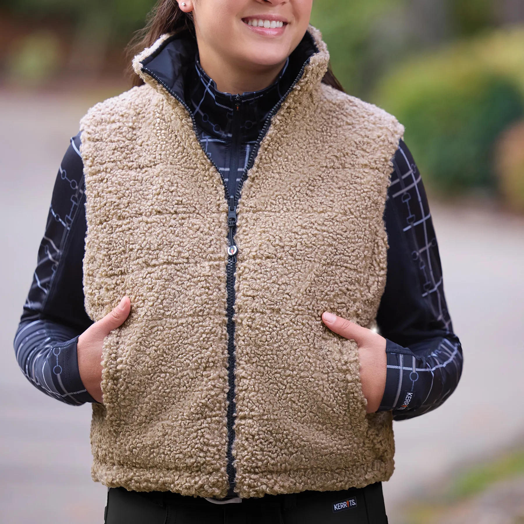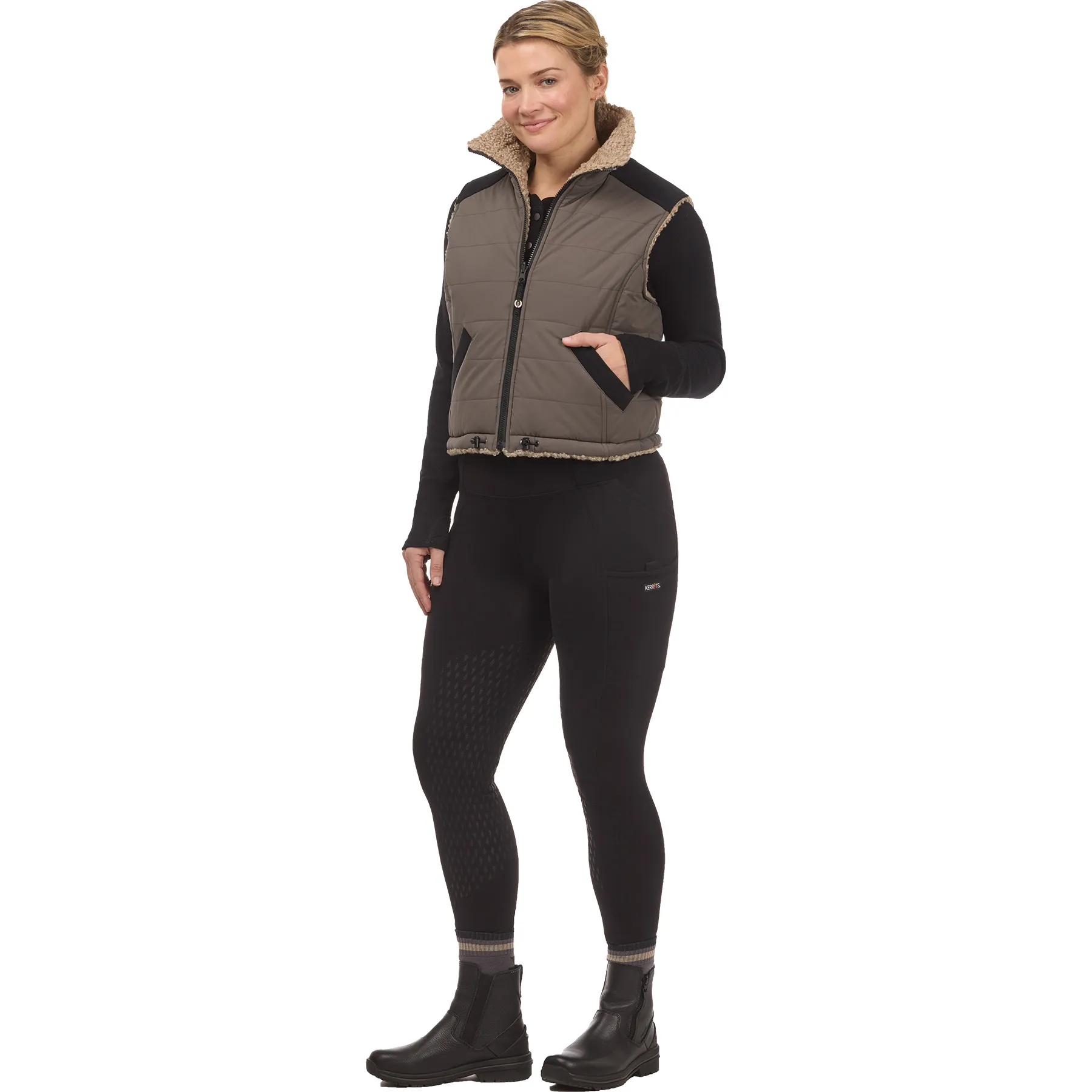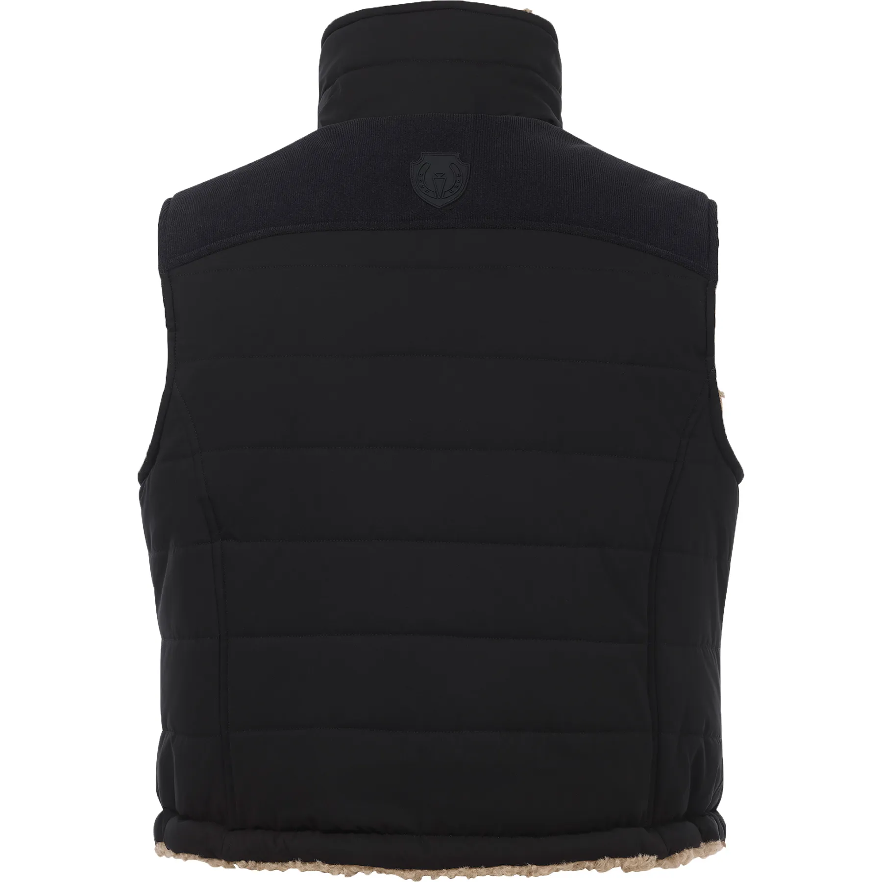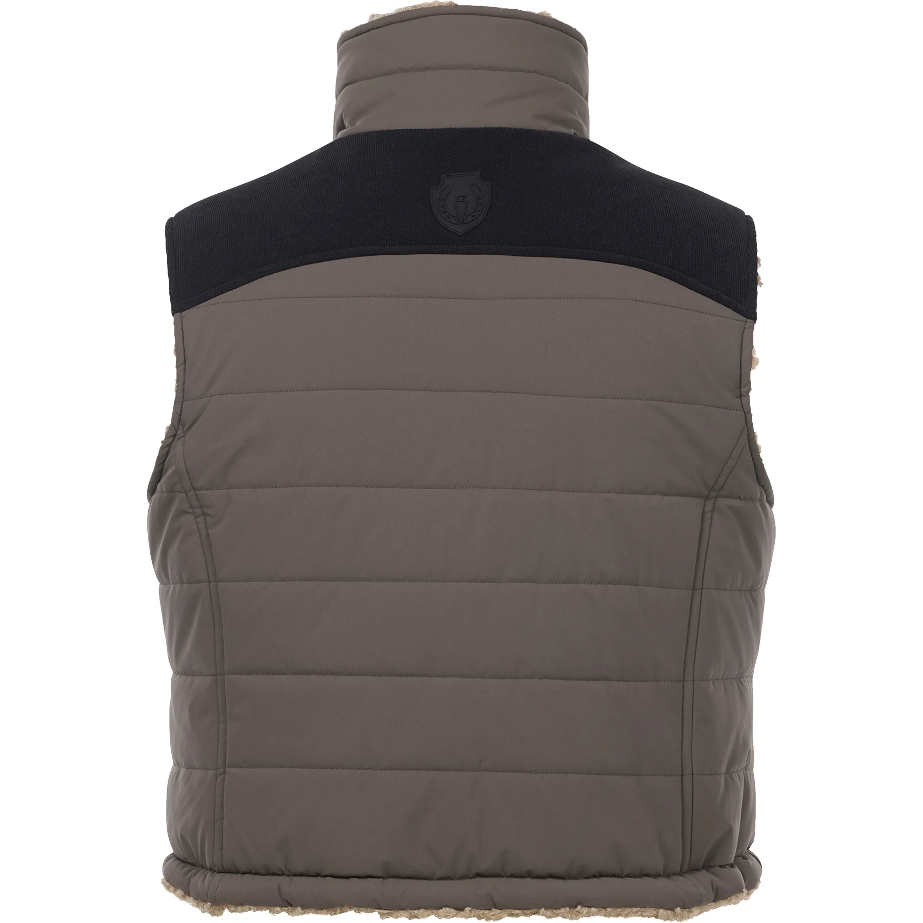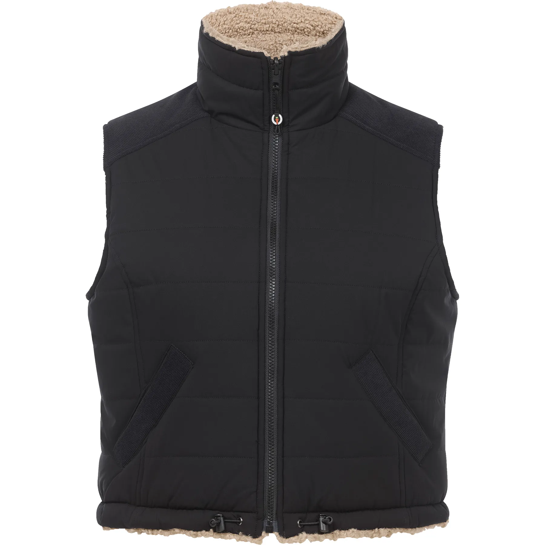 Twice the style, double the function, this reversible cropped vest is a must-have for riders who love switching up their look without sacrificing comfort. One side shows off smooth, wind- and water-resistant canvas with sleek corduroy trim, while the other wraps you in cozy sherpa fleece quilted with poly-loft insulation for extra core warmth. The adjustable drawcord waist flatters your silhouette, and practical pockets on both sides keep essentials close whether you're in or out of the saddle.