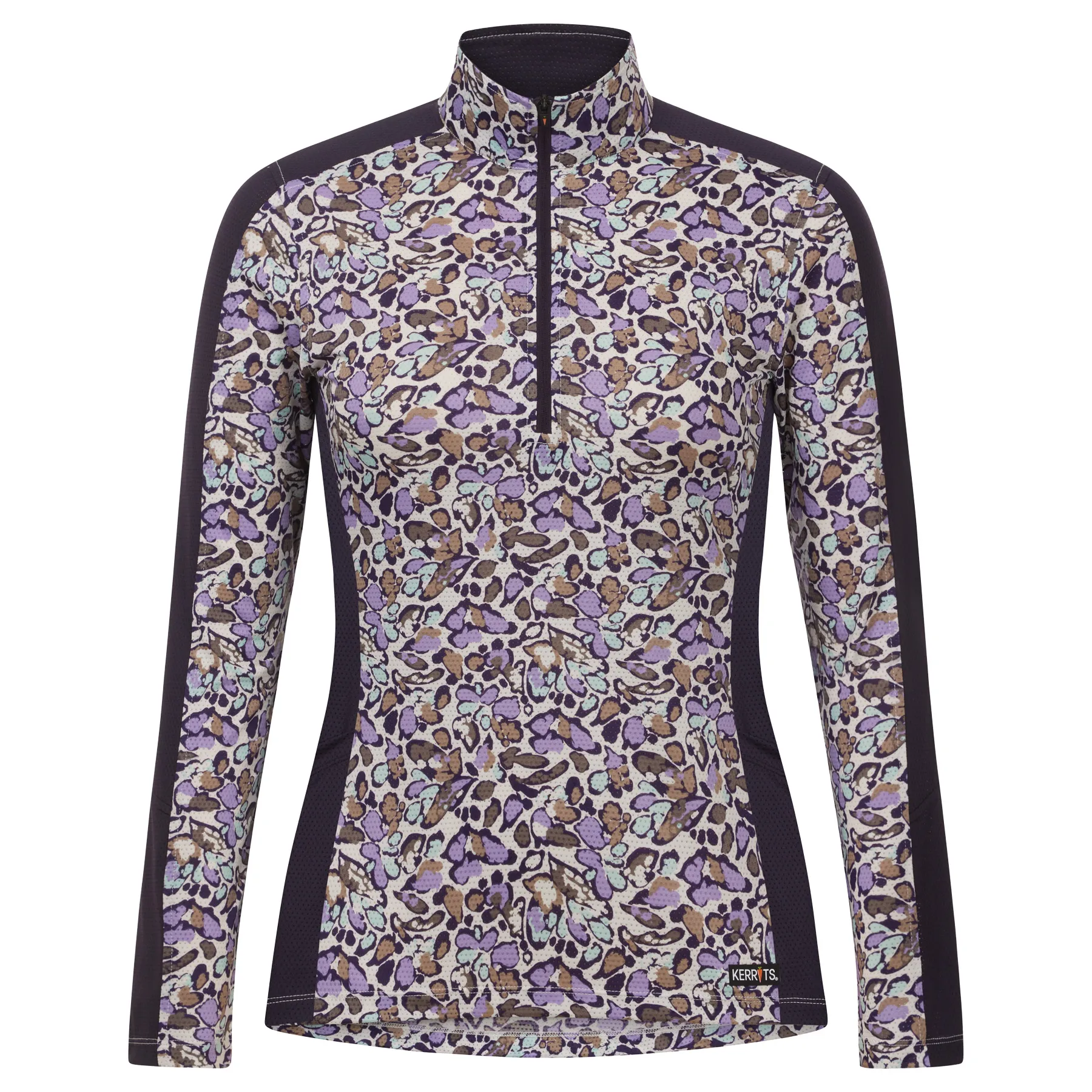 The Kerrits® Ladies Breeze Ice Fil Long Sleeve Shirt Print is designed to keep you cool, comfortable, and stylish during summer rides. Made with Ice Fil® Lite fabric, this ultra-lightweight top wicks moisture, dries quickly, and provides UPF+30 sun protection to protect your skin from the sun. The equestrian-inspired prints add a fun touch while helping to camouflage dirt and contrast side panels create a flattering, sporty look. A 10-inch zip allows for extra ventilation, and two low-profile side pockets store treats for you and your horse.