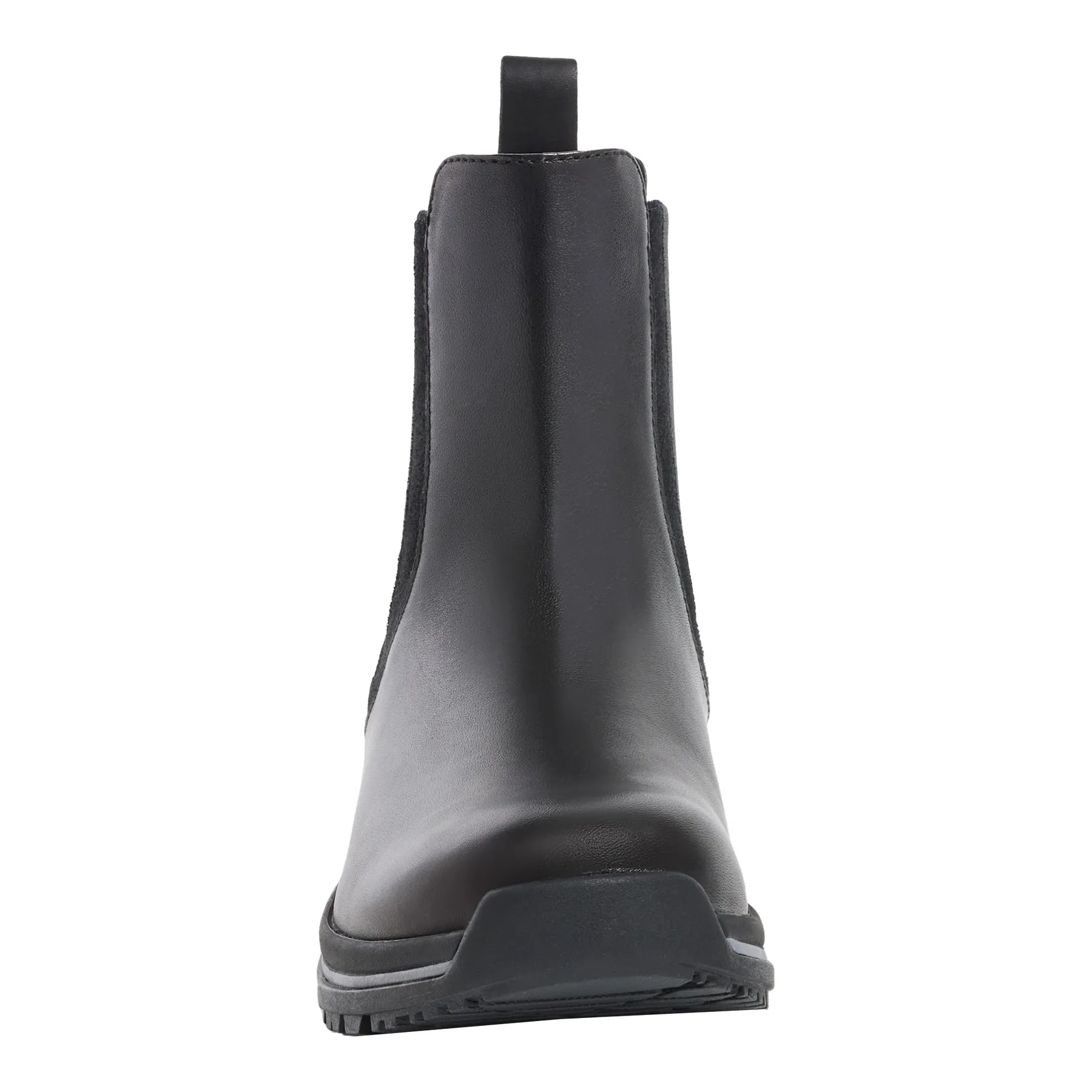 Tackle barn chores and trail rides with ease in the Kerrits® Ladies Coachella Pull-On Waterproof Barn Boot. Crafted from buttery-soft yet durable Nappa leather, this fully waterproof boot is designed for hardworking equestrians who need comfort, durability, and style. The RideDry™ technology keeps moisture out, while the K-Stride™ midsole and OrangeZone™ ATO outsole provide all-day support and traction. Plus, with a spur-friendly heel and seamless pull-on design, transitioning from barn tasks to the saddle has never been easier!