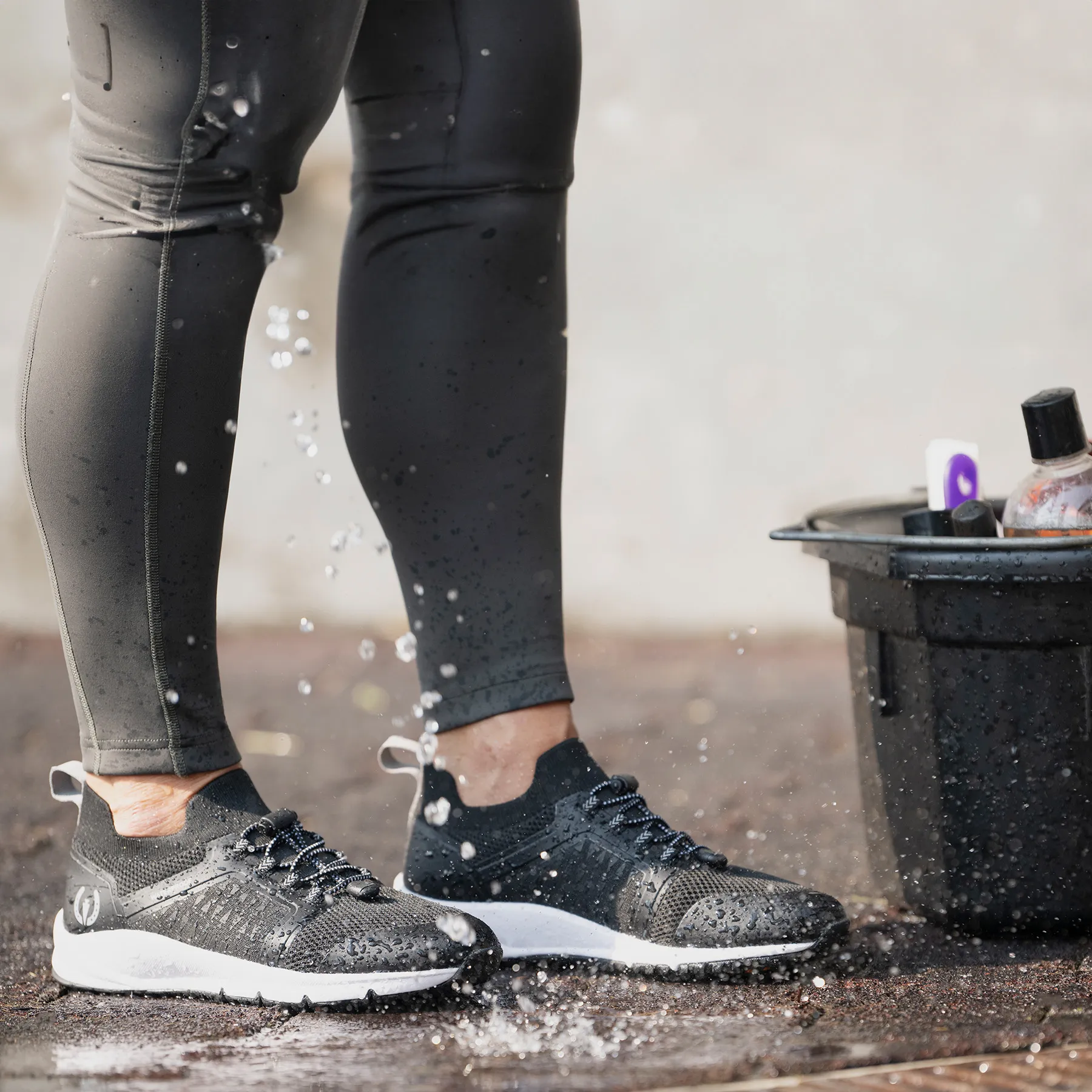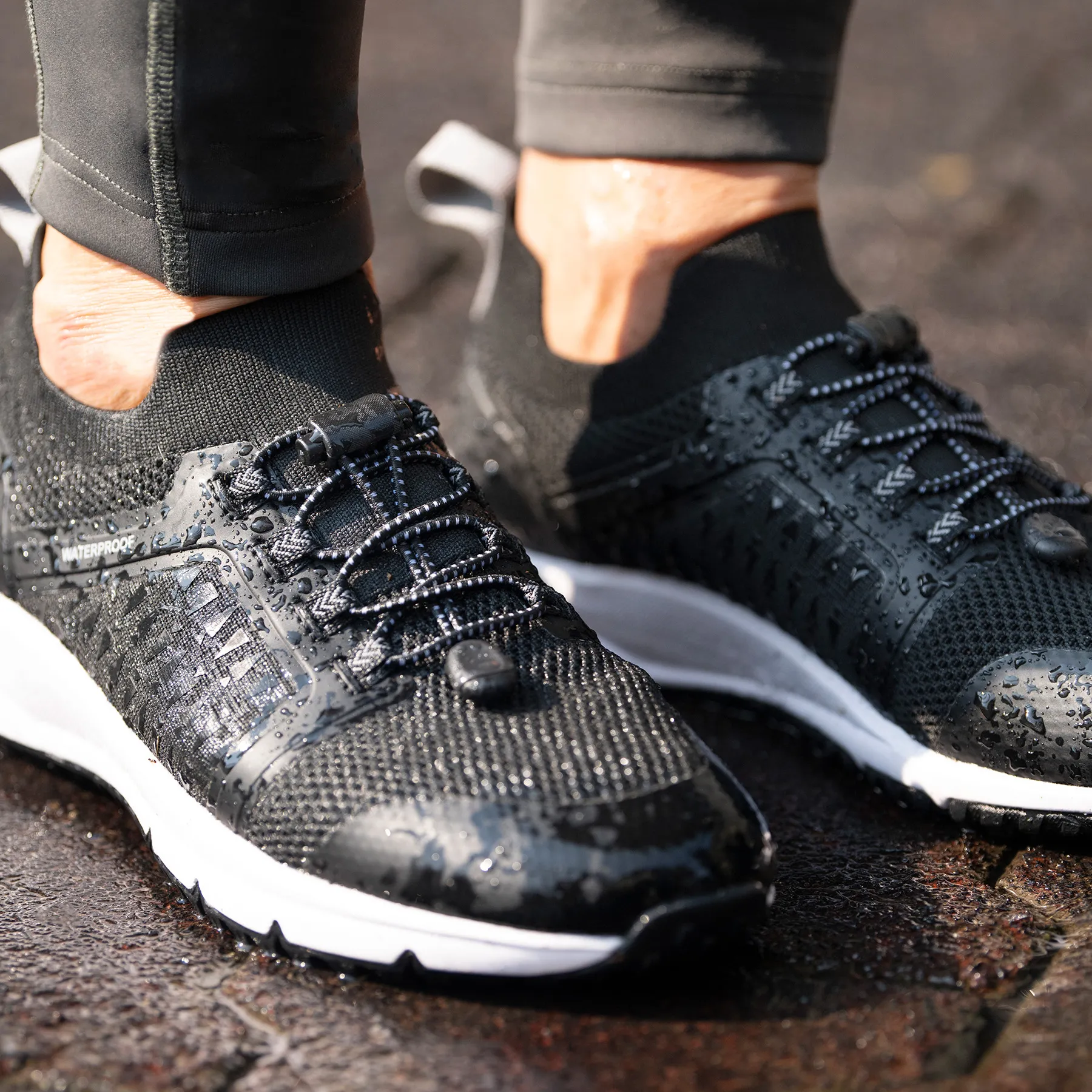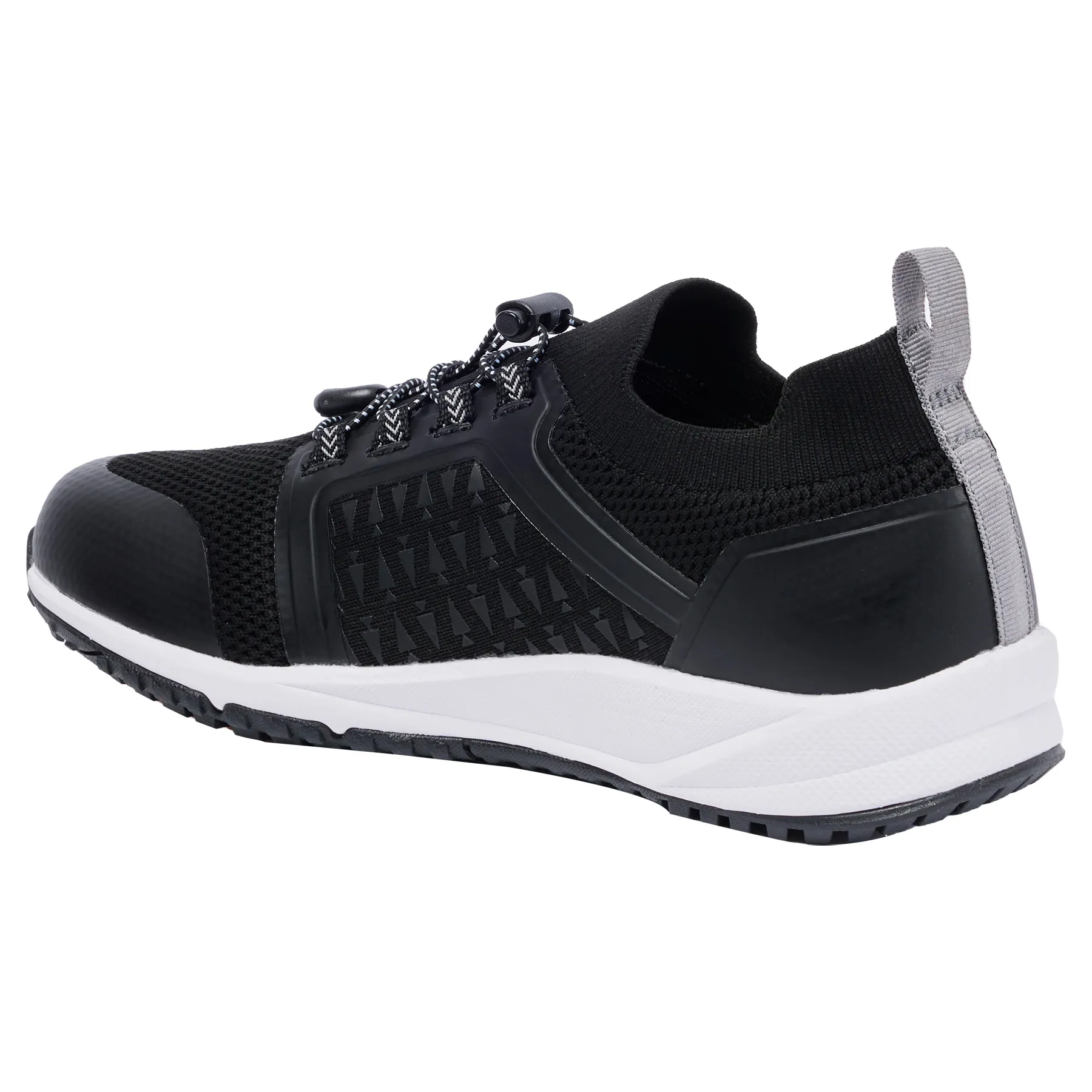 - Pull-on design with stretch laces and toggle for a secure fit