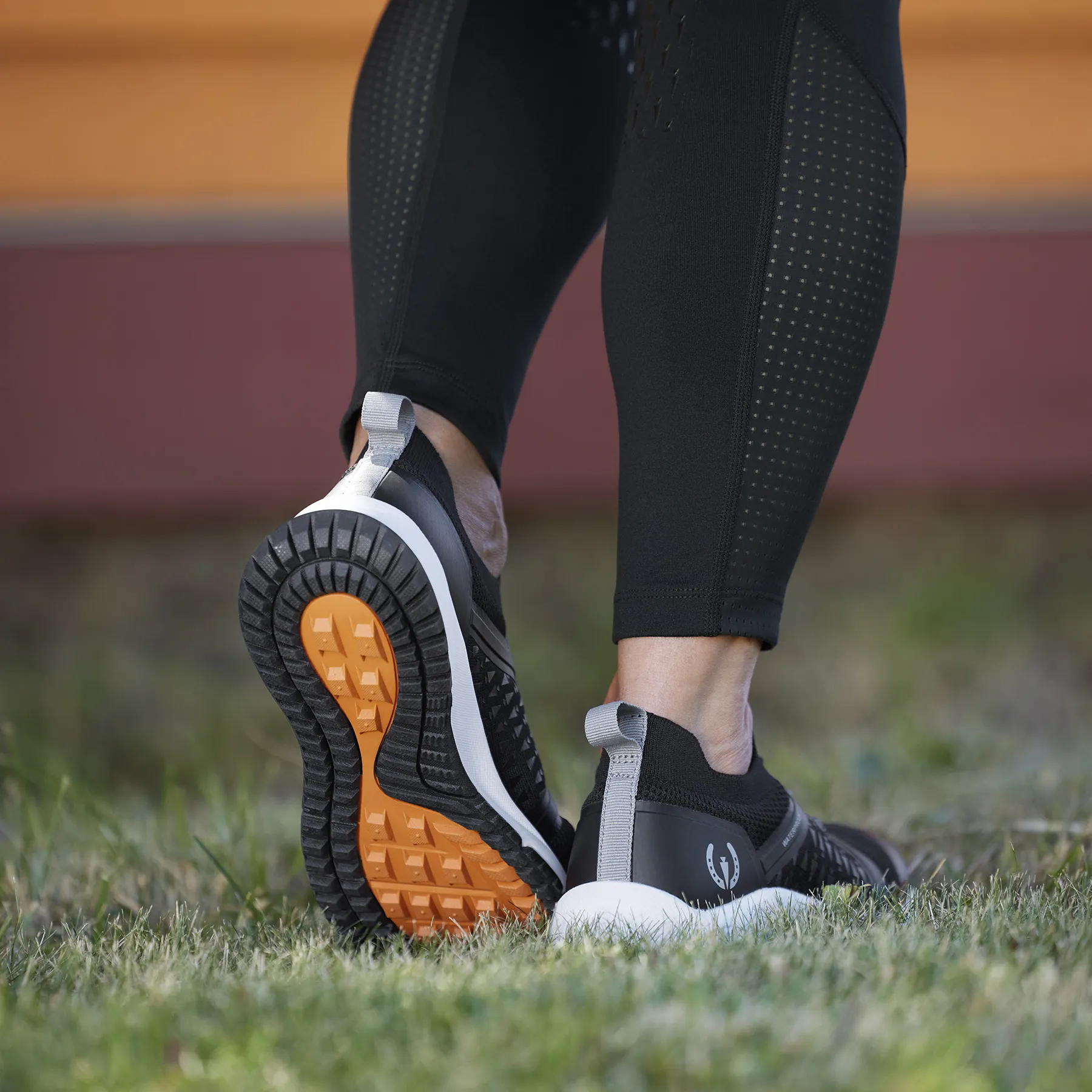 Take a break from your riding boots without sacrificing comfort or durability in the Kerrits® Ladies Groundwork Waterproof Sneaker. Designed for equestrians on the move, this sporty, waterproof sneaker is perfect for everything from morning course walks to post-lesson coffee runs. The breathable, weather-resistant upper keeps feet dry, while the K-Stride™ midsole and OrangeZone™ Lite outsole provide stability, support, and lightweight traction. Plus, the ribbed knit collar keeps out hay and shavings for a barn-friendly fit!