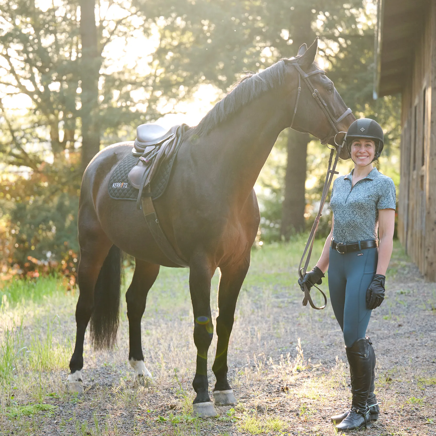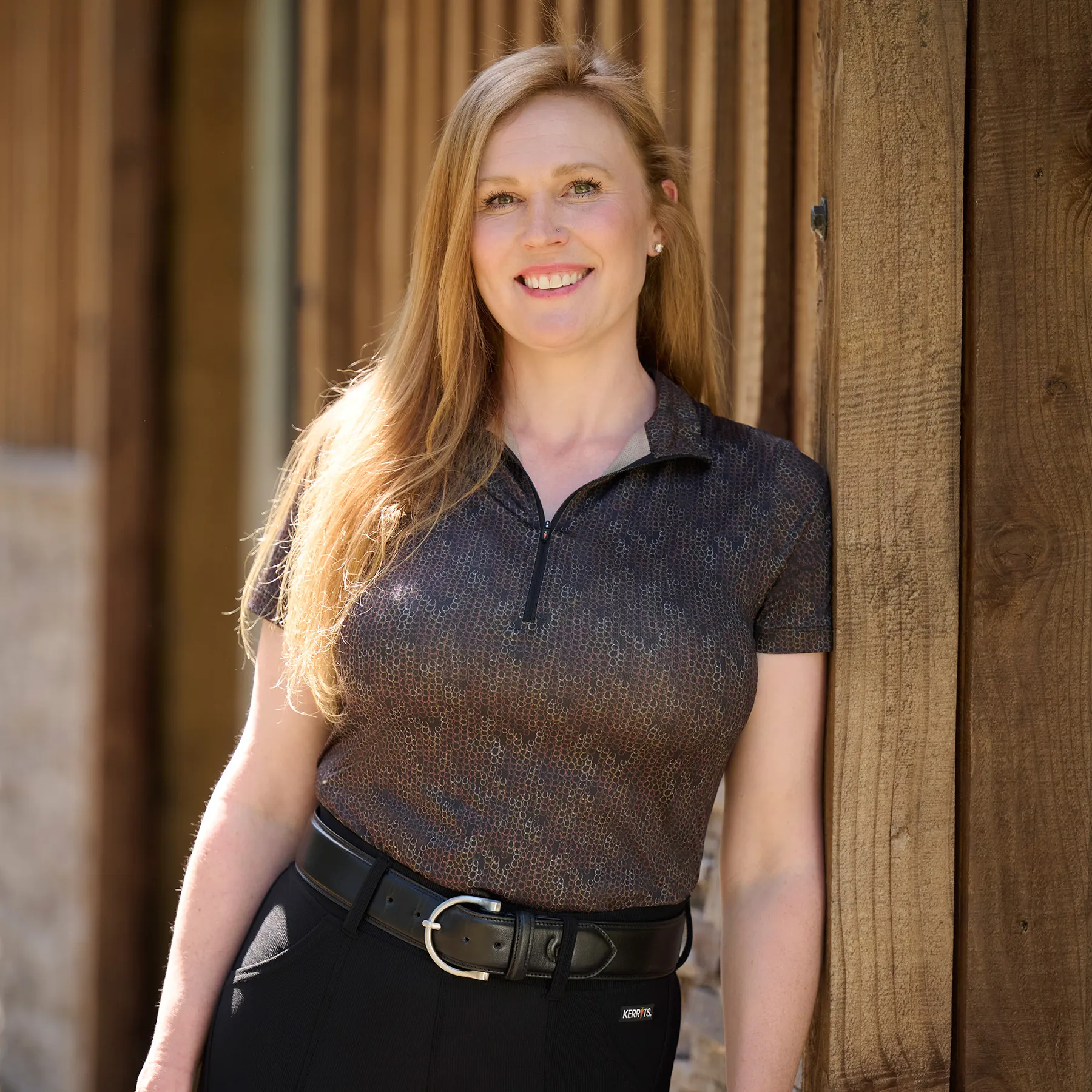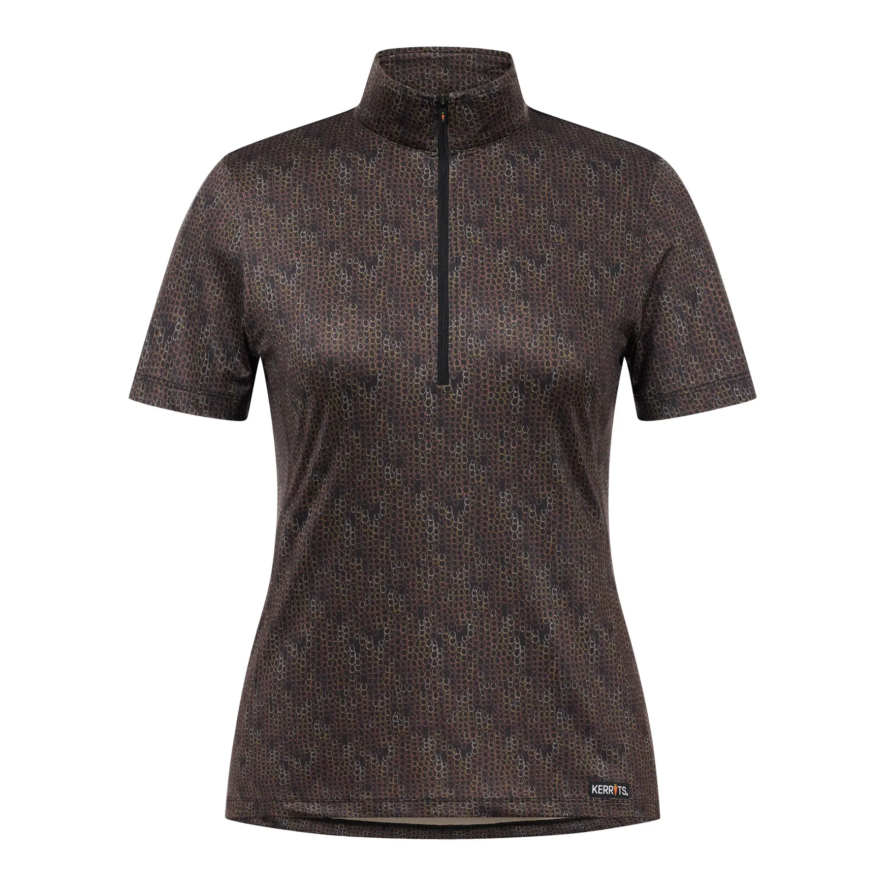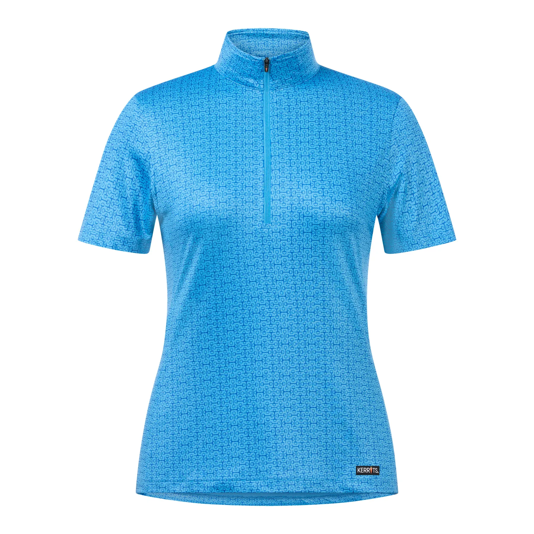 Stay cool, dry, and stylish from warm-up to cooldown in this high-performance summer riding shirt. The Kerrits® Play It Coolcore® Shirt features naturally moisture-wicking Coolcore® fabric that disperses sweat and keeps you comfortable in the heat. With UPF+40 sun protection, a 10-inch zip for ventilation, and flattering equestrian prints that hide barn messes, it's your go-to top for sunny saddle days.