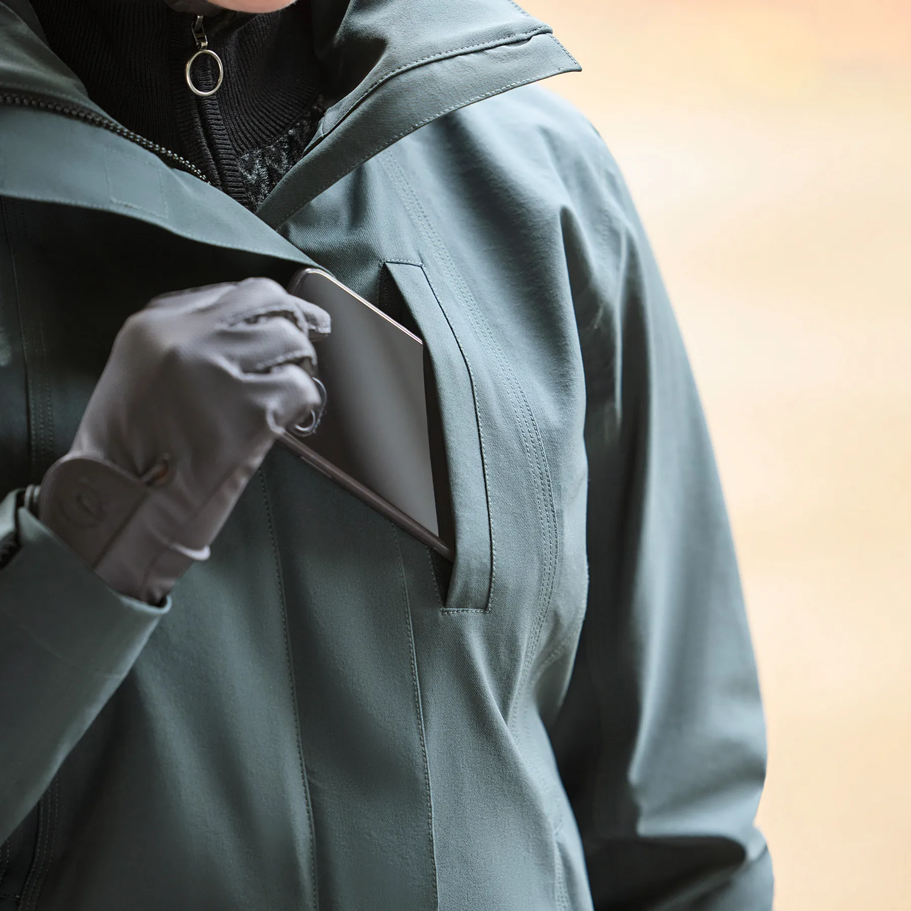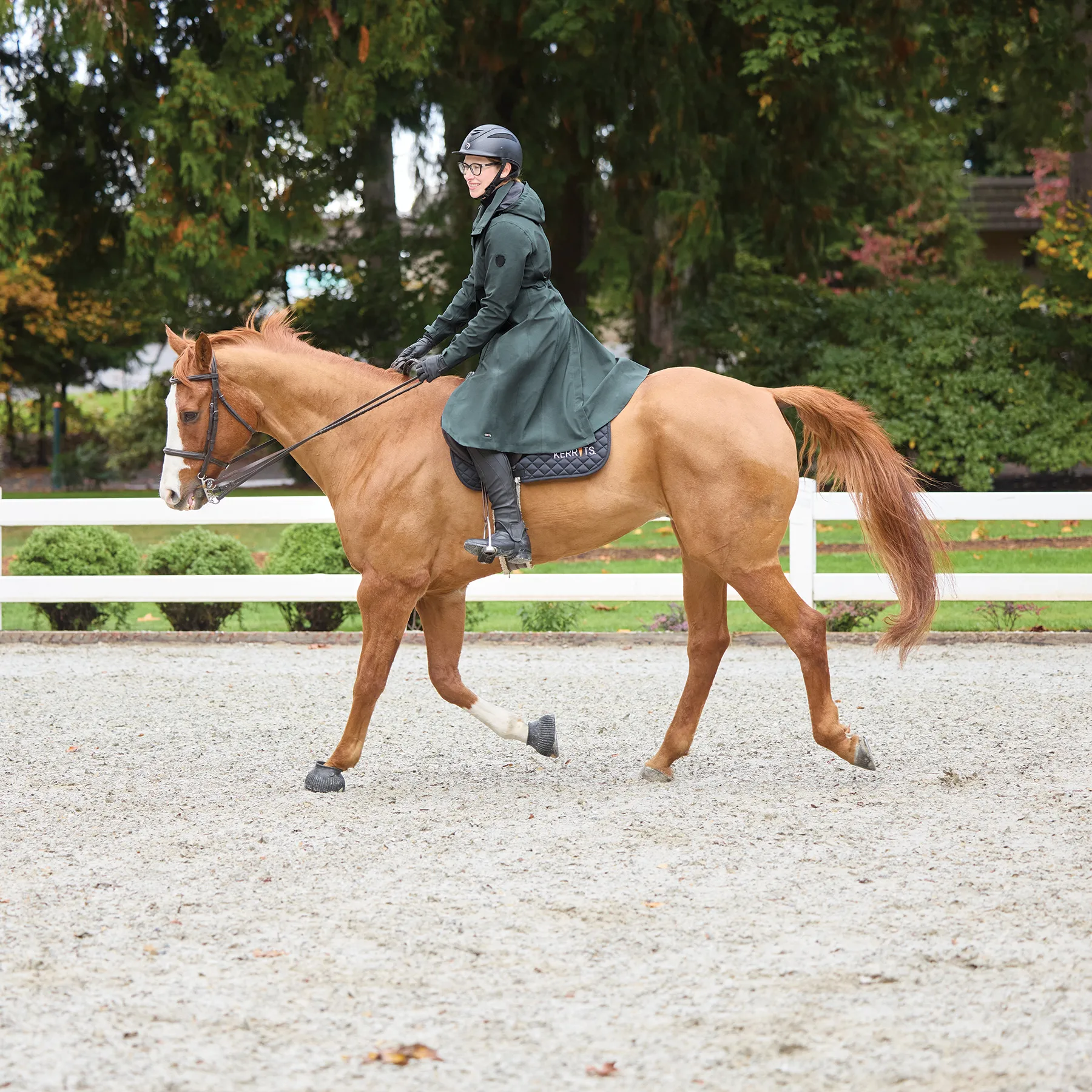 Face any forecast in this full-length, all-weather coat designed for riders, trainers, and anyone toughing it out in the elements. Made with waterproof, windproof HydroTek™ fabric and a seam-sealed design, it offers durable protection with three-season layering flexibility. The removable hood, tall collar, and internal leg straps keep you covered in the saddle, while practical features like magnetic closures, pit zips, and hand-warmer pockets deliver all-day comfort and convenience.