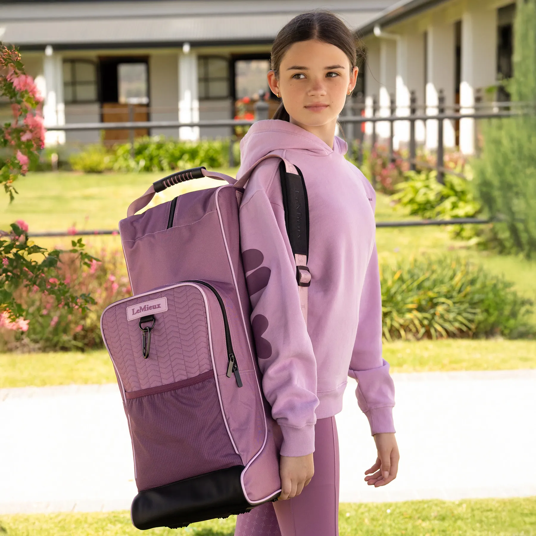 Keep Your Gear Show-Ready and Protected in This LeMieux Boot and Hat Bag! Perfect for travel or tack room storage, this stylish boot and hat bag keeps your riding essentials safe, organized, and looking sharp. Built with durable waterproof nylon, it stands up to everyday wear while its smart design ensures your gear stays dry and ventilated.