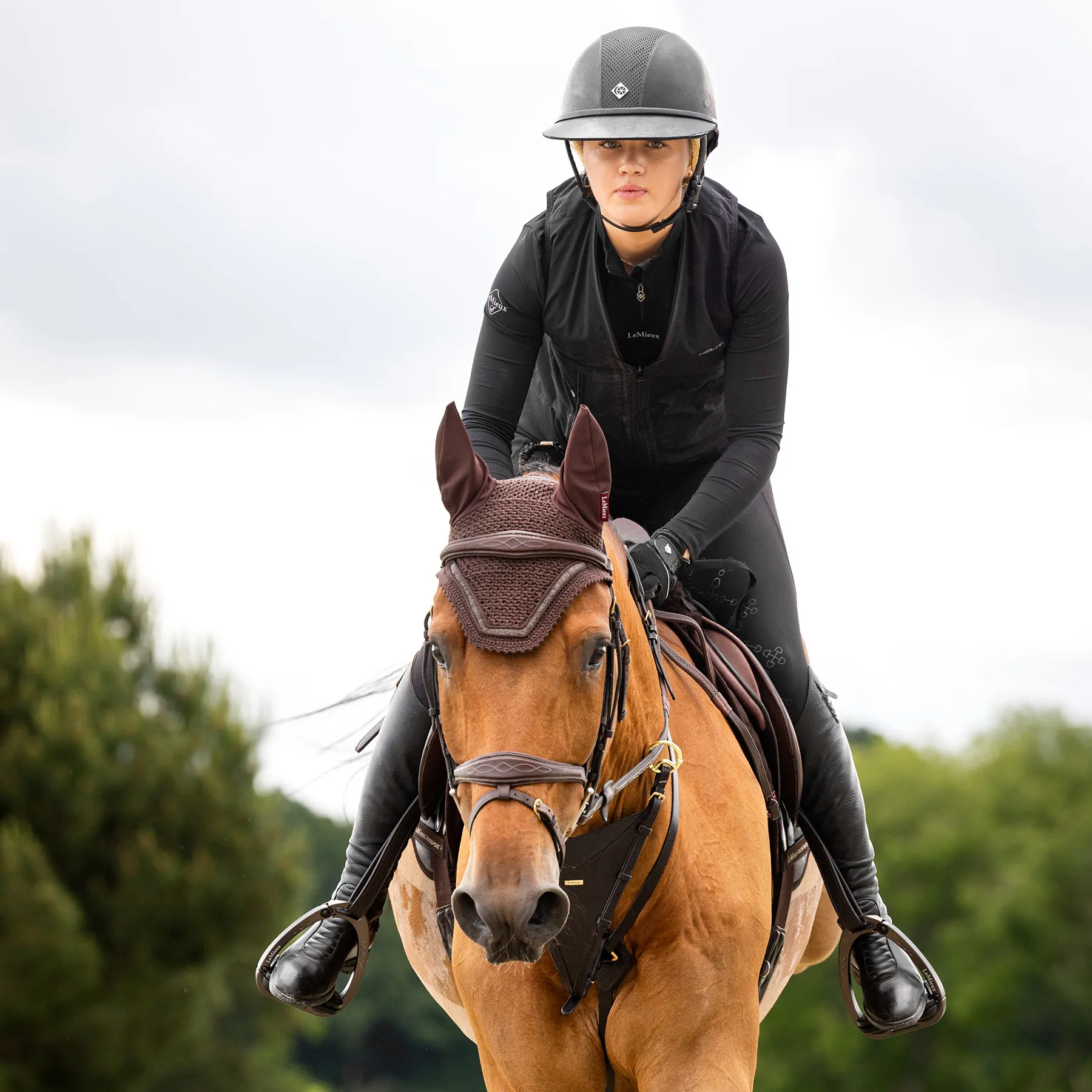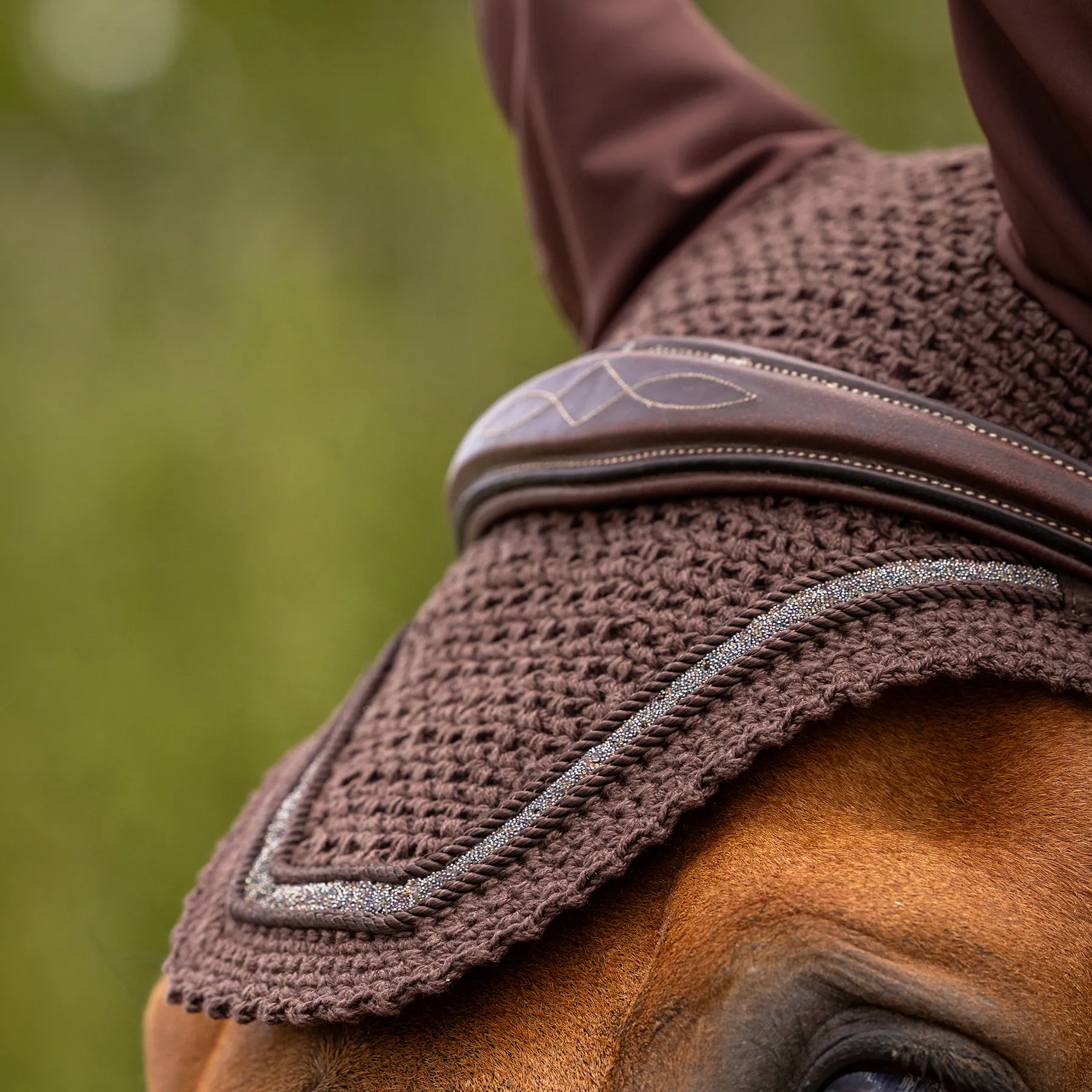 Turn heads and keep distractions at bay with the LeMieux® Crystal Fly Hood. Designed for both elegance and performance, this beautifully hand-crocheted ear net features a sparkling braided trim and soft stretch ears to shield your horse from flies while offering a snug, secure fit under the bridle.