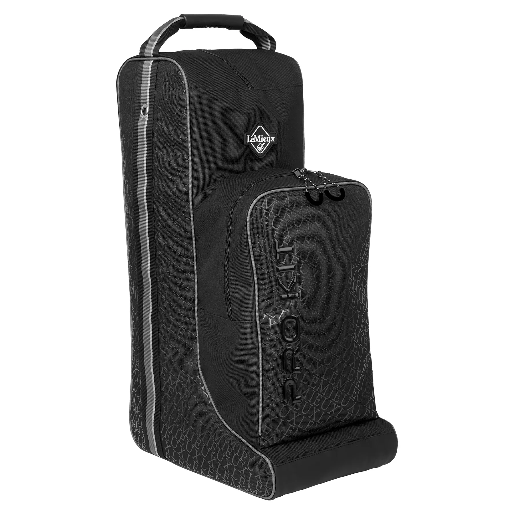 Tough, durable, and designed to maximize space, this boot and hat bag keeps your riding boots, hat, and accessories neatly tucked away! The fully waterproof equestrian gear bag by LeMieux features a fashionable design and colors that will be the envy of others! The LeMieux® Elite Pro Boot & Hat Bag maximizes space and optimizes organization, keeping your riding boots, helmet and accessories stored neatly in one spot. A robust, water-resistant outer is fully lined with smooth poly. The tall boot compartment zips open to a padded divider that keeps boots separate and prevents rubbing. The outside front compartment zips open to hold a riding helmet and small items such as gloves and hairnets. A comfort grip handle allows easy transport.
