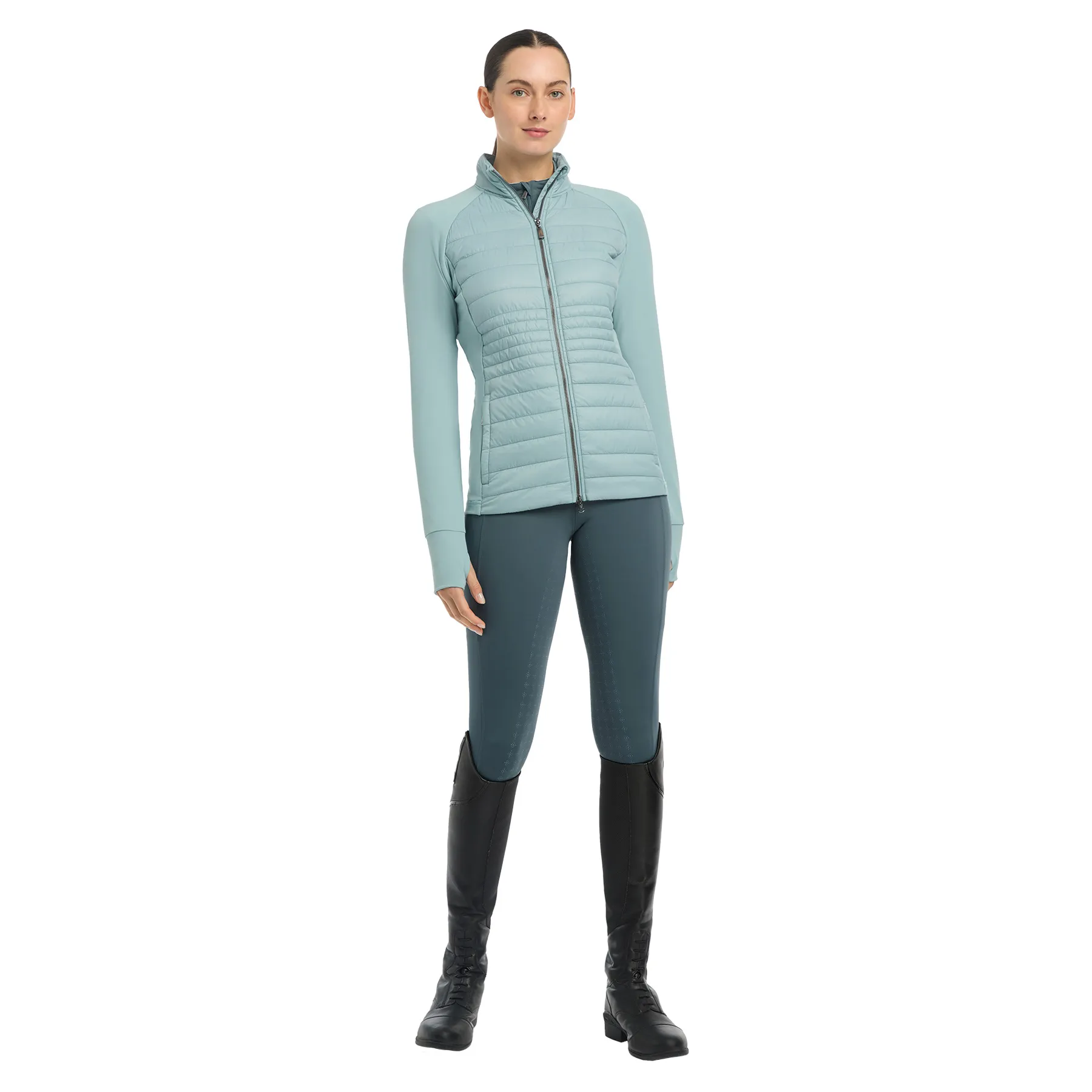 This jacket by LeMieux® is perfect for layering under coats or as an outer layer in warm climates. It's made with super-soft jersey sleeves, side panels for a flattering fit, and lightweight woven baffle quilted insulation with recycled fill at the back and front. Show off your love for the brand with the discreet, high-build print logo on the chest and metal badge on the back of the neck.