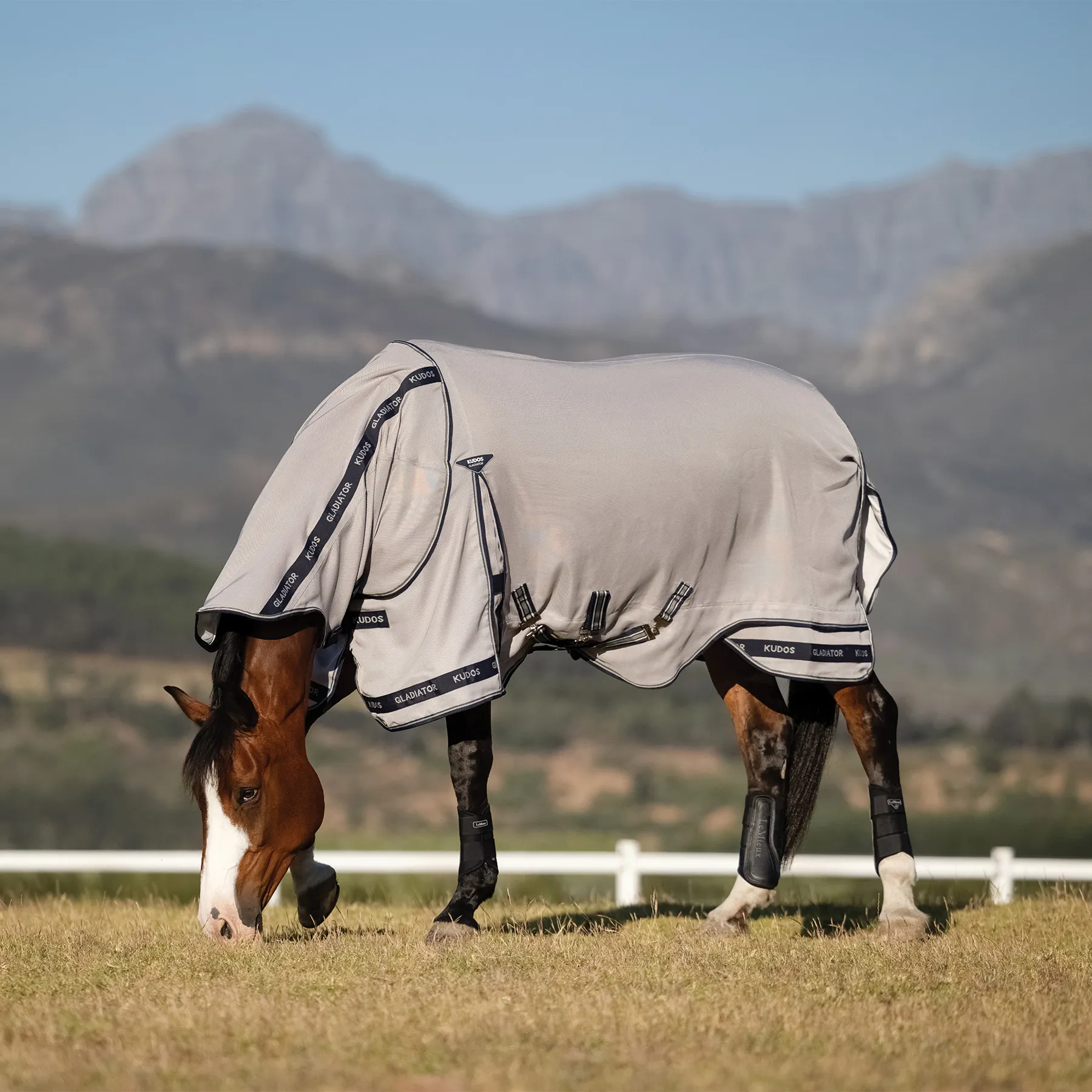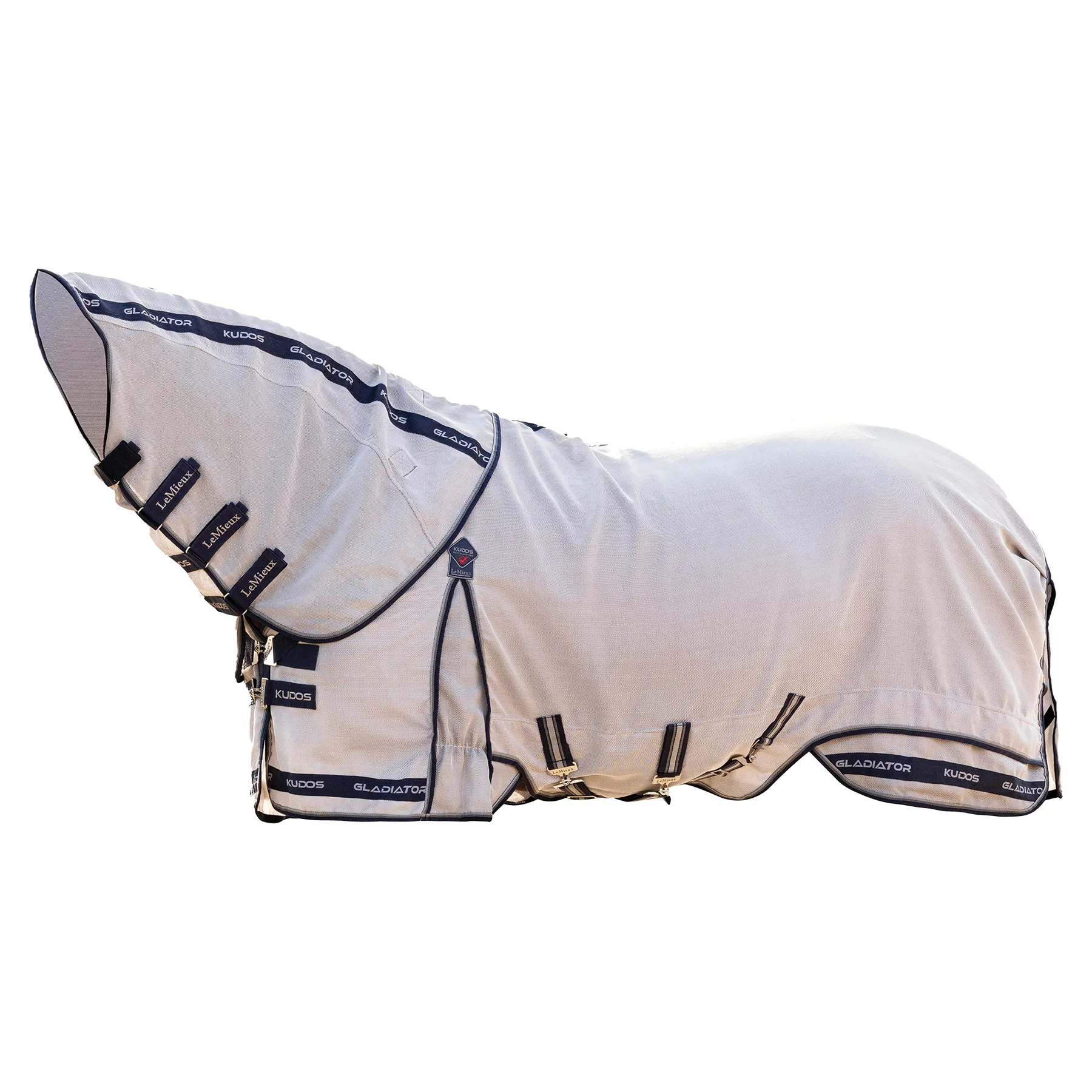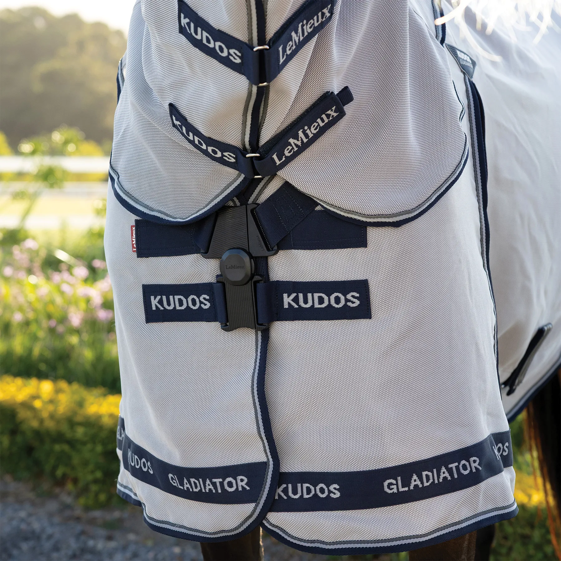 The LeMieux Kudos Gladiator Fly Rug is the ultimate luxury fly rug, crafted in superior durable intelligent power-form mesh which adapts its weave structure to mould to the shape of the horse over time. Engineered in durable nylon and monofilament polyester, the lightweight mesh makes this fly rug highly breathable, naturally repelling water and encouraging rapid drying. The extended, shaped belly flap maximises coverage and features a three-strap closure with a detachable central strap that helps to self-right the rug. The design registered angled front fastening system distributes pressure to prevent rubbing on the shoulder and across the chest. Our patented two-part skirt provides a break in the hemline and relieves tension allowing for a greater range of movement. Ultimate fly protection Intelligent power-form UV mesh UV protection rating of 80% Adapts weave structure when snagged Self-righting 3-way belly closure Two-part skirt and angled front closure for pressure relief Detachable nek.