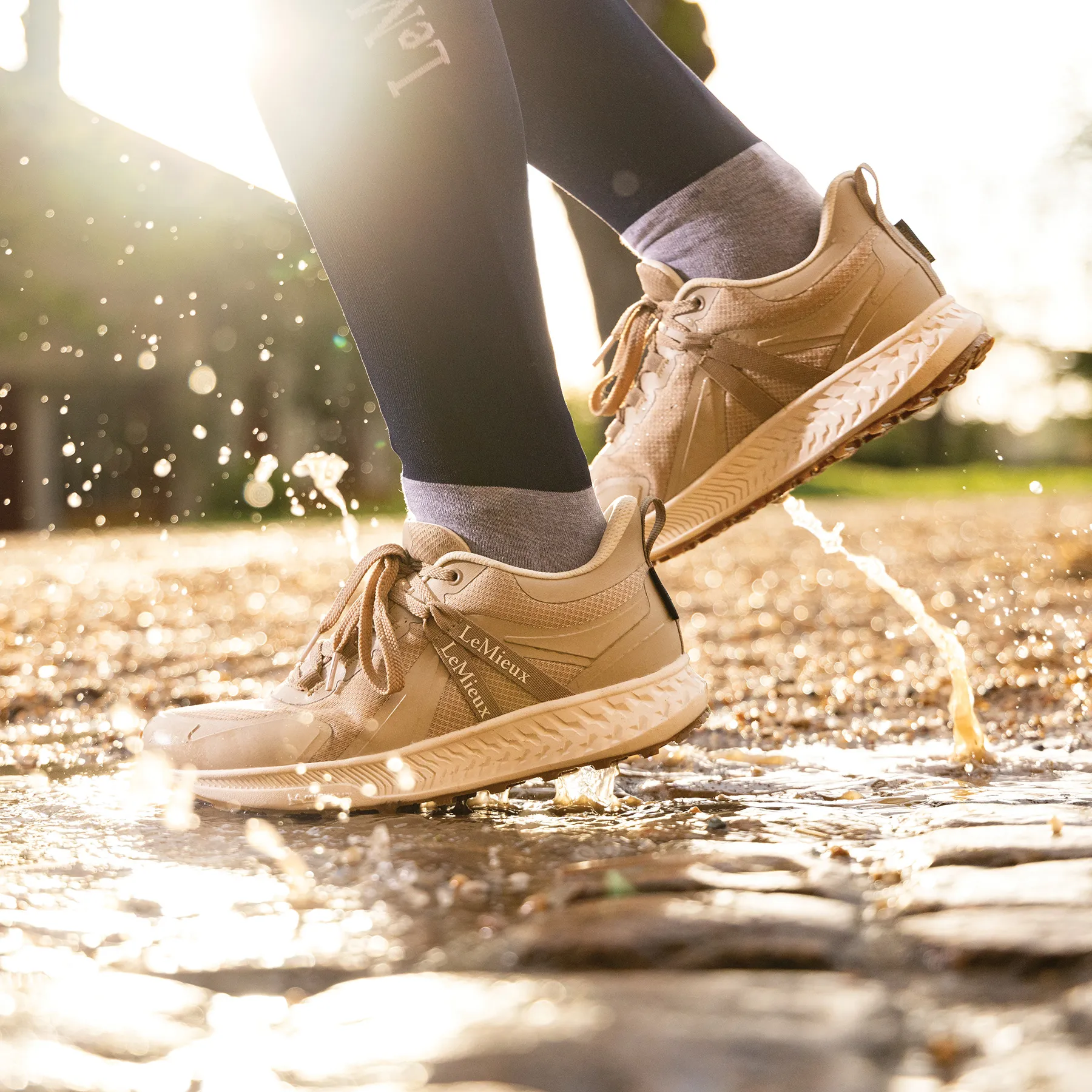 Rain or shine, the LeMieux Ladies Trax Waterproof Trainer keeps up with your active, on-the-go lifestyle. Built for the barn and beyond, this sporty sneaker features rugged waterproof protection, all-day comfort, and a stylishly functional design that's made to move. Whether you're mucking stalls or hitting trails, these trainers are ready for anything.