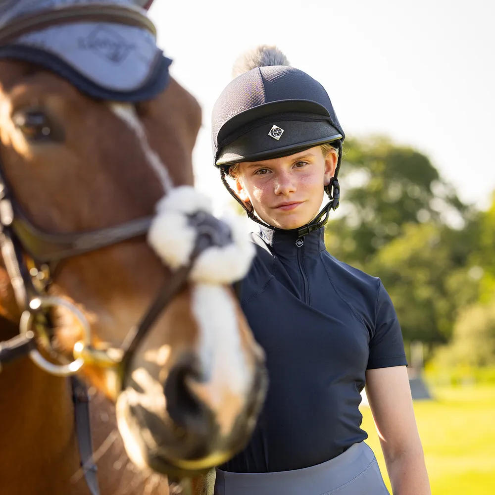 Made from silky smooth 4-way stretch fabric designed to fit over most helmet sizes for a snug & secure crease free fit. The two mesh front panels, press stud top, and detachable pom adds a classic LeMieux look to your horse riding wardrobe. The strategically placed breathable mesh inserts prevent the hat vents from being blocked.