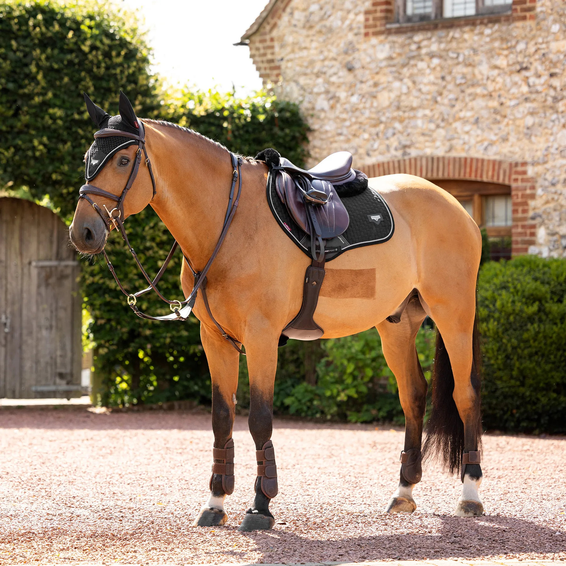Ride in sleek, modern style with the LeMieux Puissance Suede Close Contact Square Pad. Featuring a new athletic design with dual cord trim and a luxe suede finish, this pad combines fashion and function for serious riders. Built to keep your horse cool and comfortable, it's a performance essential with a designer edge.