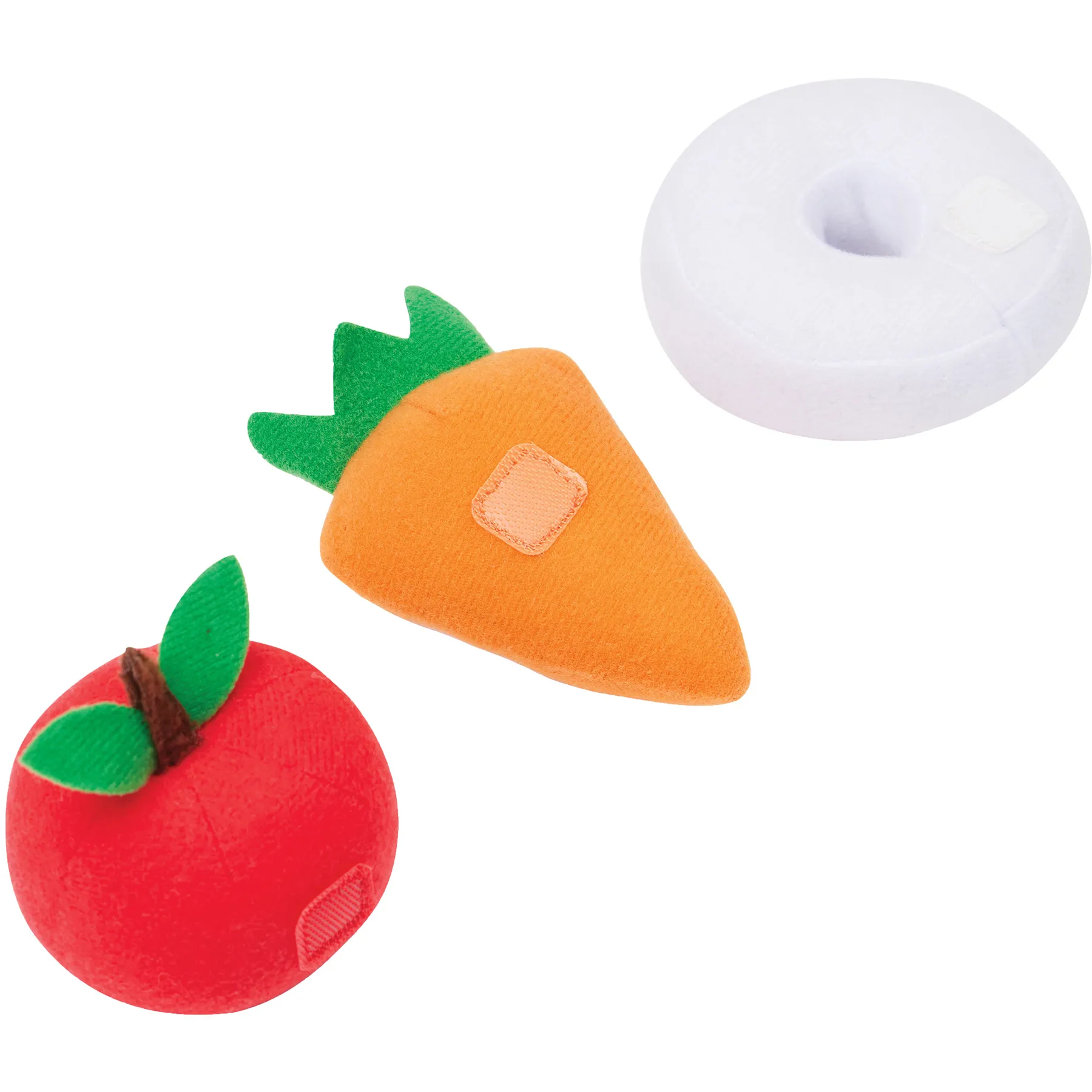 - Includes fabric carrot, apple, and mint treats