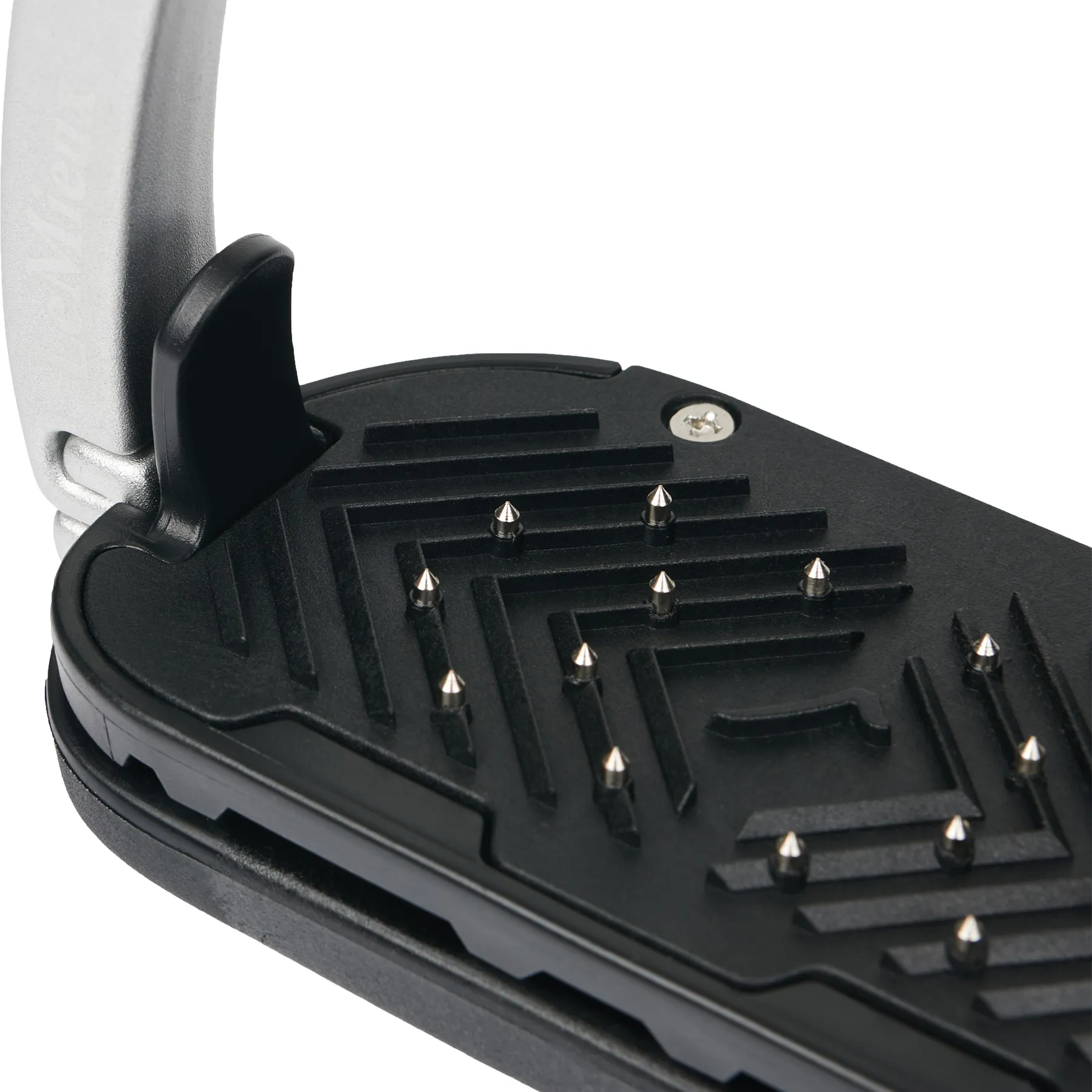 - 5° ergonomic footplate with steel pins for grip and heel support