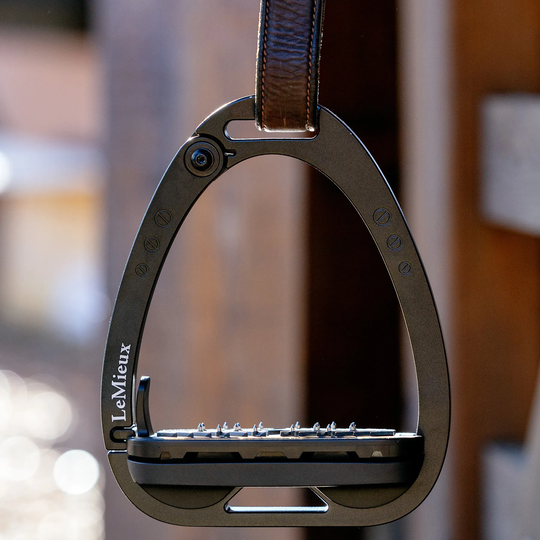 The LeMieux Vector Balance Stirrups combine cutting-edge design with traditional elegance for serious riders. Crafted from aviation-grade aluminum, these lightweight yet incredibly strong stirrups provide unbeatable security, stability, and ergonomic support in the saddle, whether you're schooling or soaring over fences.