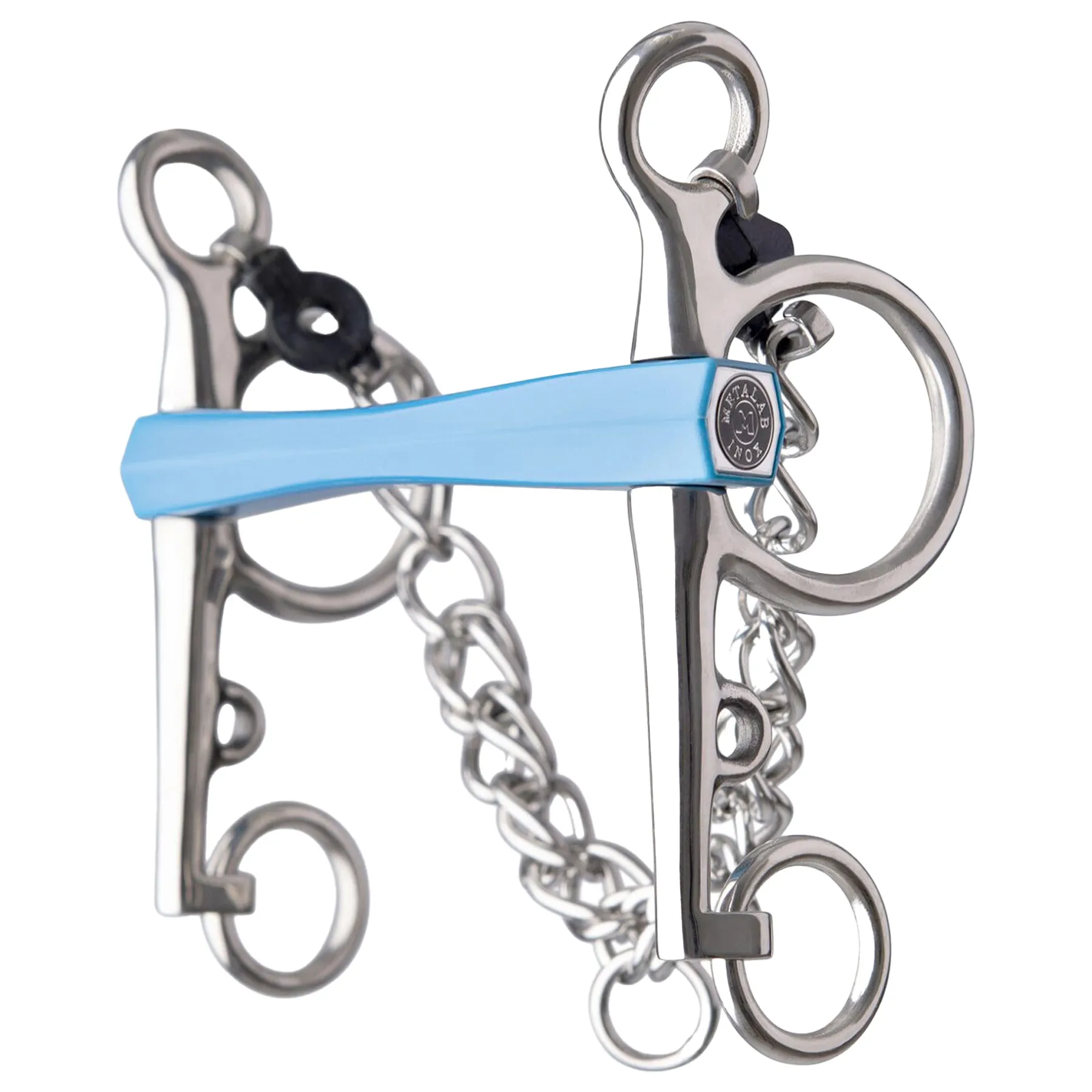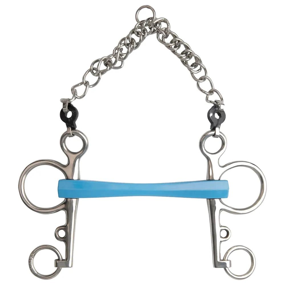 Designed for refined communication with a bit of extra power, the Metalab® Flexi Semi-Soft Mullen Long Pelham Bit delivers controlled responsiveness without compromising comfort. The semi-soft blue PU molded mullen mouthpiece encourages relaxation and acceptance, while the longer 2-3/4" shanks offer added leverage for experienced hands. It's a great choice for riders who want a balance of soft feel and elevated control.