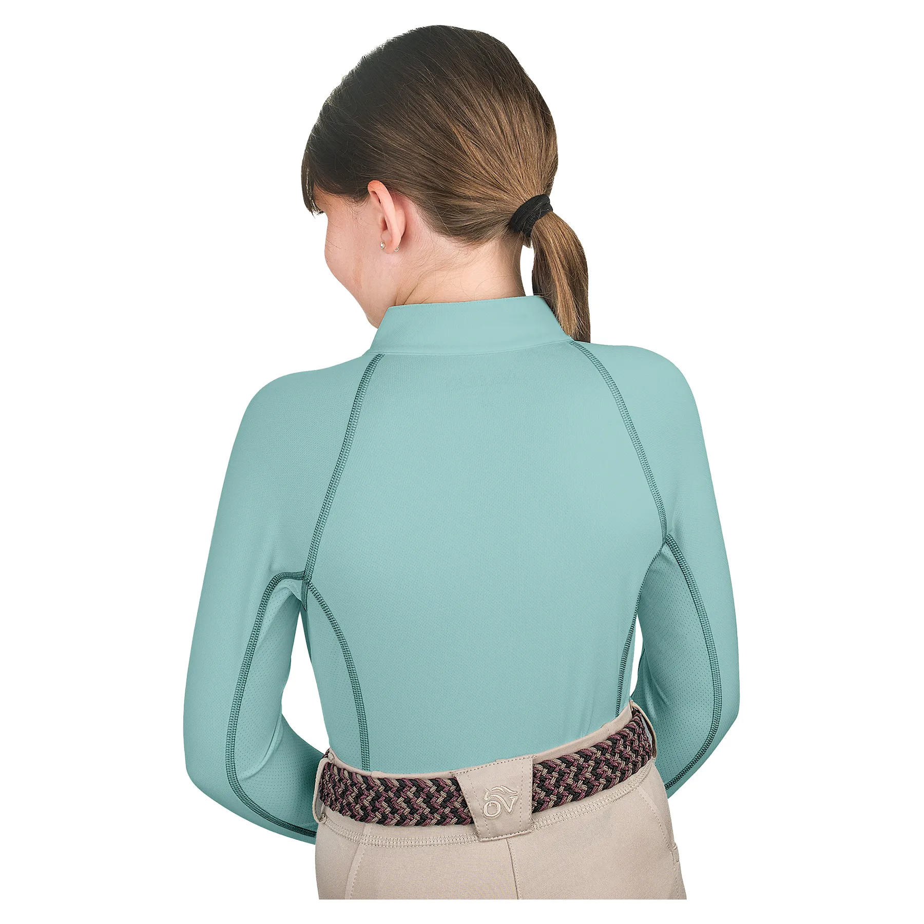 Let young riders shine in the saddle with the Ovation Kids Quarter Zip Long Sleeve SunShirt. Designed for all-season layering, this breathable, lightweight top offers built-in UPF 50+ sun protection and moisture-wicking comfort. Mesh panels enhance airflow for those extra-sunny days, while the quarter zip allows for quick cooling and easy changes. It's a practical choice for long days at the barn or the showgrounds.