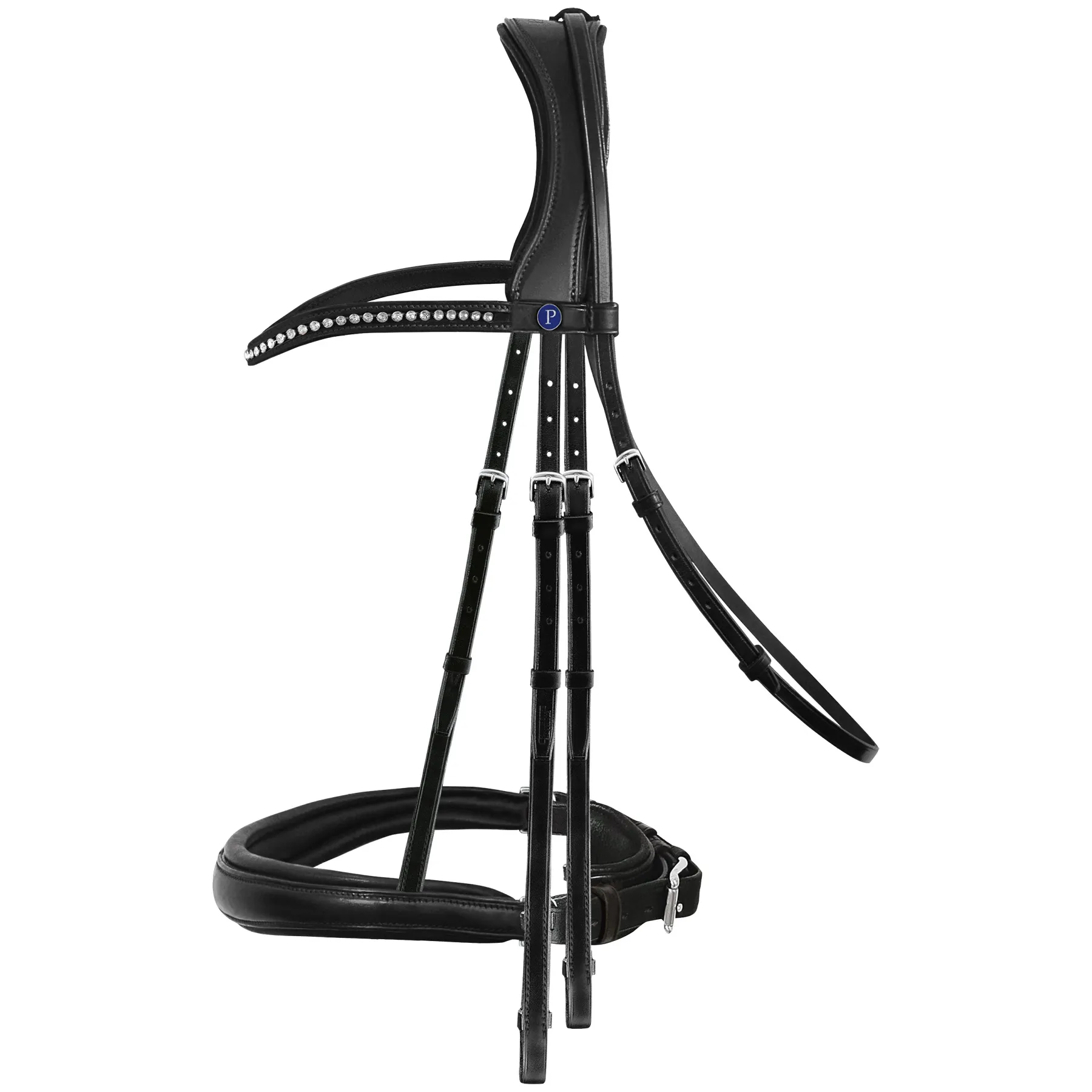 Elegant and thoughtfully designed, the Passier Blu Dream Double Bridle brings together anatomical comfort and sparkling style. With its softly lined, pressure-distributing headpiece and horse-friendly Caveson Special, it ensures a kind fit that your horse will appreciate. A waved browband with Clear Crystal accents adds eye-catching brilliance, while dual reins and stainless steel fittings round out this deluxe package.