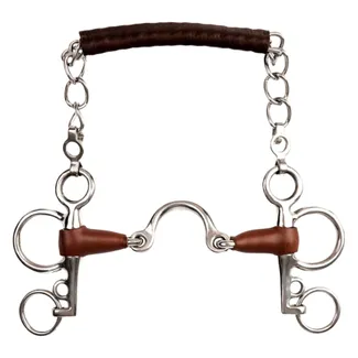Pelham bits are a unique kind of bit that combine the design of a snaffle bit and curb bit to allow riders to give precise instructions to their horse while riding. The Pelham bit has a shank, usually with two rings and a curb chain, to keep the bit from rotating too much. Pelham bits usually have two main rings: a snaffle ring, and a curb ring. Pelham bits are almost always used for double bridles and riders use the two sets of reins for the snaffle rings and the curb rings.