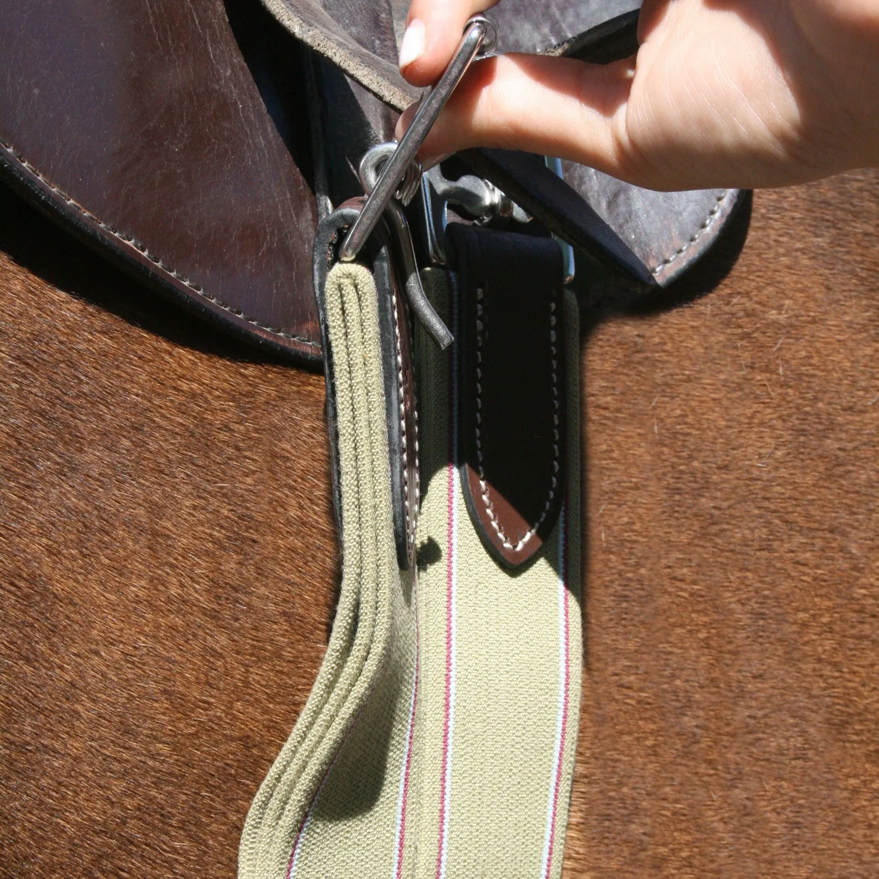 This fancy-stitched English girth combines premium materials with exceptional craftsmanship, offering comfort and style for your horse. This girth ensures optimal comfort, handcrafted from the finest full-grain English leather and generously padded with memory foam. The raised fancy stitching adds stunning detail, while durable roller buckles and flexible elastic provide a perfect fit.