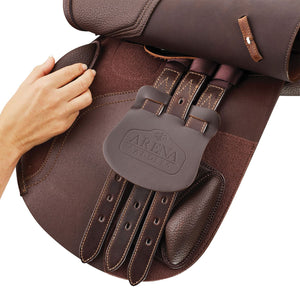 The Arena Jump Saddle is a European leather saddle that provides great balance and support for jumping and flatwork at an affordable price. With its Easy Change Gullet Fit System, this saddle provides the flexibility to fit a variety of horses, ensuring optimal comfort and performance. The saddle has a CAIR system that provides protective cushioning to enhance the horse's comfort. The ElastiFlex Tree is lightweight, durable, and allows lateral flexion, while Performance Panel Technology ensures freedom of motion. Additionally, Comfort Seat Technology supports the rider, allowing seamless movement with the horse while feeling secure in the saddle.