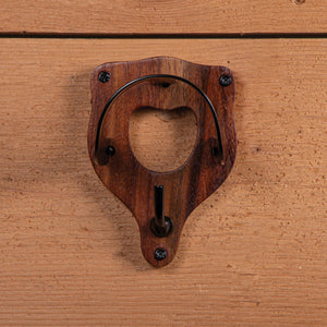 An attractive combination of brass black coated hooks on a shaped wood base that will dress up any barn. A simple yet classy addition to tack rooms, stall fronts, and grooming stalls to hang bridles, halters, leads, or girths.