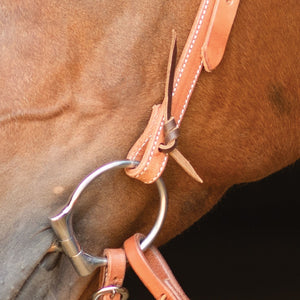 This Hermann Oak leather browband headstall is the perfect blend of beauty and durability, crafted to handle the demands of everyday work while maintaining timeless style. The slightly grained finish offers premium eye appeal, and the ¾” wide leather construction is strong, flexible, and built to last. With stainless steel hardware and double adjustable cheeks, this headstall delivers reliable performance and a custom fit for training young or seasoned horses alike.