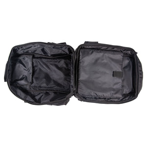 - Holds everything you might need around a horse show including helmet, gloves, crop (separate secure pocket), hairnets, water bottles, keys, phone, laptop, protective vest, chaps, ½ chaps, paddock boots, socks, horse treats, and jacket