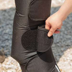 Keep your horse comfortable and protected while traveling in these fleece-lined shipping boots. Expertly designed to shield your horse's legs up to and above the knee and hocks, these boots are crafted with durability and comfort in mind. They feature a robust 600D ripstop polyester exterior and a soft polar fleece lining to prevent any rubs during transport. The contoured fit is secured with wide hook-and-loop closure straps for easy on and off. Reinforced PVC heel bulb covers provide extra protection against impacts. This set includes two front and two hind boots for complete leg protection.