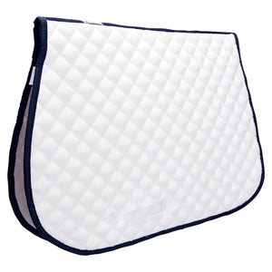 - A classic white saddle pad ideal for schooling, jumping, or eventing