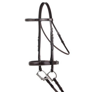 Crafted from the finest Sedgwick leather, your horse will look great in this classic hunter bridle. This bridle is perfect for hunters and jumpers. It has a leather crown with 1/2" cheeks and a 3/8" hanger and throat latch. The high-quality stainless hook studs and buckles boast unparalleled durability for regular use. With the fancy stitched cavesson and browband accents, your horse will make a stylish picture in and out of the show ring.