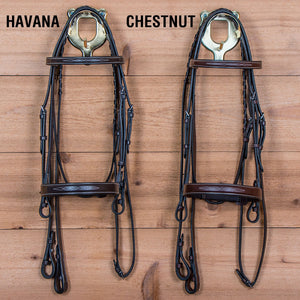- Leather crown with 1/2" cheeks and 3/8" hanger and throatlatch