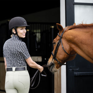 - Short-sleeve riding shirt with a relaxed yet feminine fit