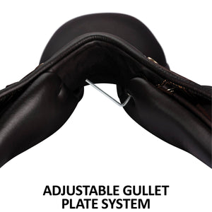 The Pinnacle Adjustable Gullet Saddle comes with a medium wide gullet plate that can be replaced with different sizes to accommodate various horse shapes, providing a personalized fit for your horse. This adjustable system caters to narrower and wider horses, ensuring their comfort and well-being.