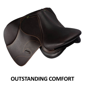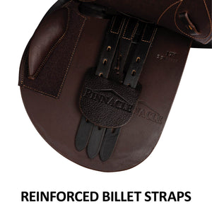 The Pinnacle Adjustable Gullet Saddle is a remarkable blend of superior craftsmanship and unbeatable value. This high-quality saddle, meticulously crafted from the finest grain leather in an elegant, oiled Havana brown color, offers unparalleled quality at an affordable price point. The saddle's adjustable gullet plate system is its standout feature, providing the flexibility to accommodate various horse sizes and shapes. The close contact design improves communication between the rider and the horse, while the durable billet straps ensure the saddle stays securely in place during use.