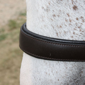 - Rolled throat with snap for clean fit around throatlatch