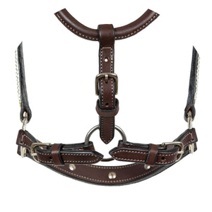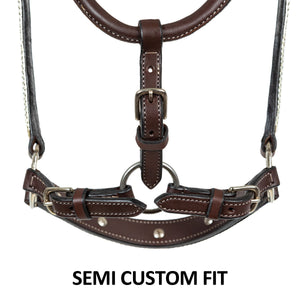 1" wide leather with double crown buckle adjustment. Three point buckle adjustment at the gullet and curb, form fitted throat can be shaped to fit.