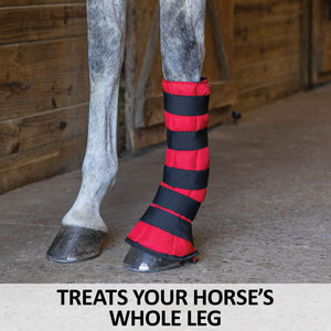 Give your horse the ultimate in cold therapy comfort with these cooling gel leg and hoof wraps. It flares at the bottom to cover the leg, hoof, and coronet band. With the polyacrylate gel-filled sections, these wraps can be kept in the freezer until you need them. These wraps are perfect to heal soft tissue injuries or other traumas and prevent injury after exercise.