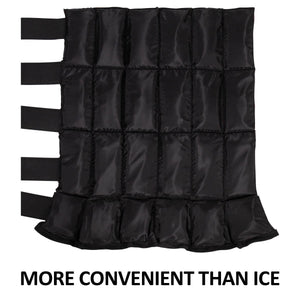 With these wraps, no ice is needed. The polycrlate gel filled sections stay cold for hours when applied directly from the freezer. The outer is made with durable 420 denier.
