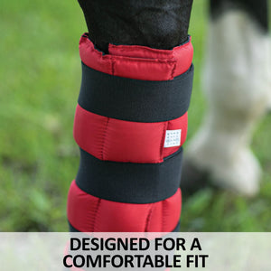 These wraps were made to fit a wide range of horses comfortably. Elastic hook and loop closures allow for optimum adjustability, so they'll fit almost any horse in your barn. The gel filled sections are quilted, so they conform to your horse's leg to deliver the cool therapy evenly and comfortably.
