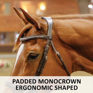 The ergonomic monocrown is designed to reduce pressure on sensitive areas of your horse's head, providing unmatched comfort. Padded throughout, it ensures an even weight distribution, preventing discomfort and irritation during long rides.
