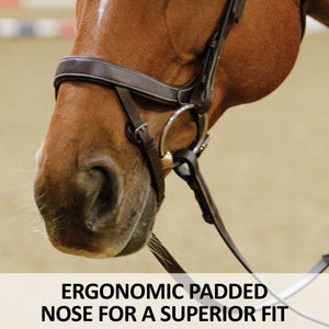 The padded noseband is crafted for an anatomical fit that comfortably hugs your horse’s contours. Its ergonomic design enhances stability and contributes to a smoother, more enjoyable ride. The flash, sewn in at an angle, ensures an optimal fit and promotes effective communication between horse and rider.