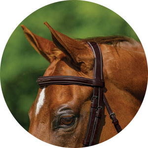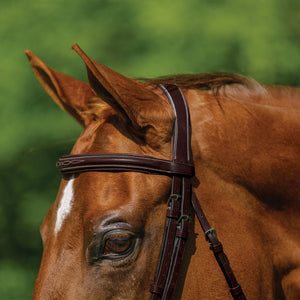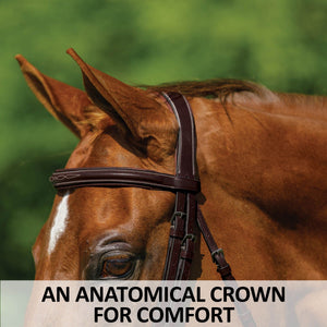 This bridle features an anatomically shaped crown padded to alleviate pressure points often caused by narrower designs. The crown is specifically contoured to ensure comfort around the ears, providing a superior fit for your horse while enhancing your horse's overall comfort and well-being.