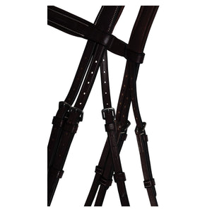 Experience the exquisite craftsmanship of our Schneiders® Raised Padded Hunter Bridle with Fancy Stitching. This bridle is made from the finest hand-selected English leather and promises exceptional quality and durability. With meticulous attention to detail, our bridle features 13 to 15 stitches per inch, hand-rubbed edges, and robust stainless hardware, ensuring longevity. This stunning hunter bridle also includes 5/8" x 54" laced reins with raised, fancy-stitched ends, making it a perfect addition to your equestrian gear.