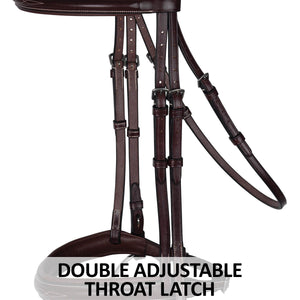 Schneiders® Raised Padded Hunter Bridle with Fancy Stitching features a double adjustable throat latch designed to provide a custom fit for your horse.