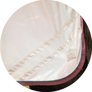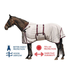 The RipGuard Adjusta-Fit® Fly Sheets are constructed from a special diamond interwoven 350D ripstop mesh x 600D soft-interlocking mesh that self-repairs snags, which can lead to larger tears. When you see a small snag occur, you simply rub the fabric back and forth between your fingers to repair the material. This sheet allows for airflow perfect for horses living in moderate to warm climates with the best insect protection against small to medium-sized biting insects, like gnats and flies.
