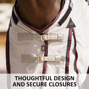 A breathable 70D SilverTek® Nylon lining has been included on the front chest, shoulders, and tail flap. This technology has proven antibacterial properties that reduce rubs, odor, and irritations. When it comes into contact with bacteria or other microorganisms, the silver ions are released from the fabric, distributing their cell membranes and interfering with their metabolic processes. As a result, growth is inhibited, reducing the number of bacteria on the fabric’s surface. This keeps your horse healthier and the fabric cleaner, even after extended use and wear.
