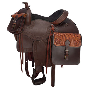 - Gear up for the trail with the matching Tooled Leather Saddle Bag , designed for convenient storage while you ride.