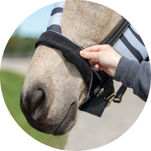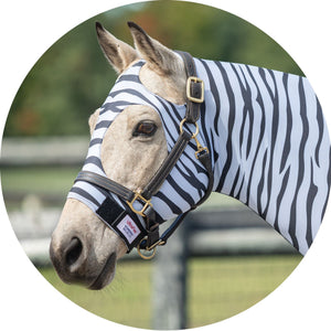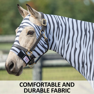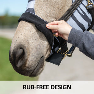 The comfort cuff polar fleece lined noseband ensures your horse's nose is protected from rubs and irritation. Additionally, the lack of center seams on the face and mane means that there are no areas of the slicker that could cause rubs or discomfort to your horse. Say goodbye to rubs with the UltraFlex® Pull-On Zebra Slicker Hood, the ultimate horse protection and comfortable choice.