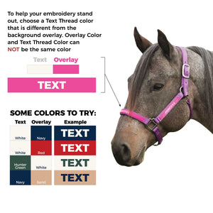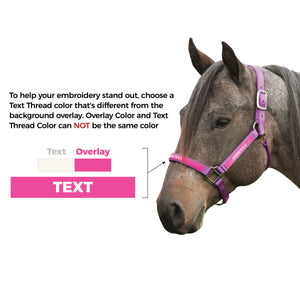 Customize the colorful Weaver Embroidered Nylon Halter to give as the perfect gift to someone special or even yourself! You can add embroidery to either the nose or cheeks of this halter. Add your horse's or barn name to this nylon halter that's crafted for comfort, performance, and style. To help your embroidery stand out, choose a thread color that's different from the background overlay.